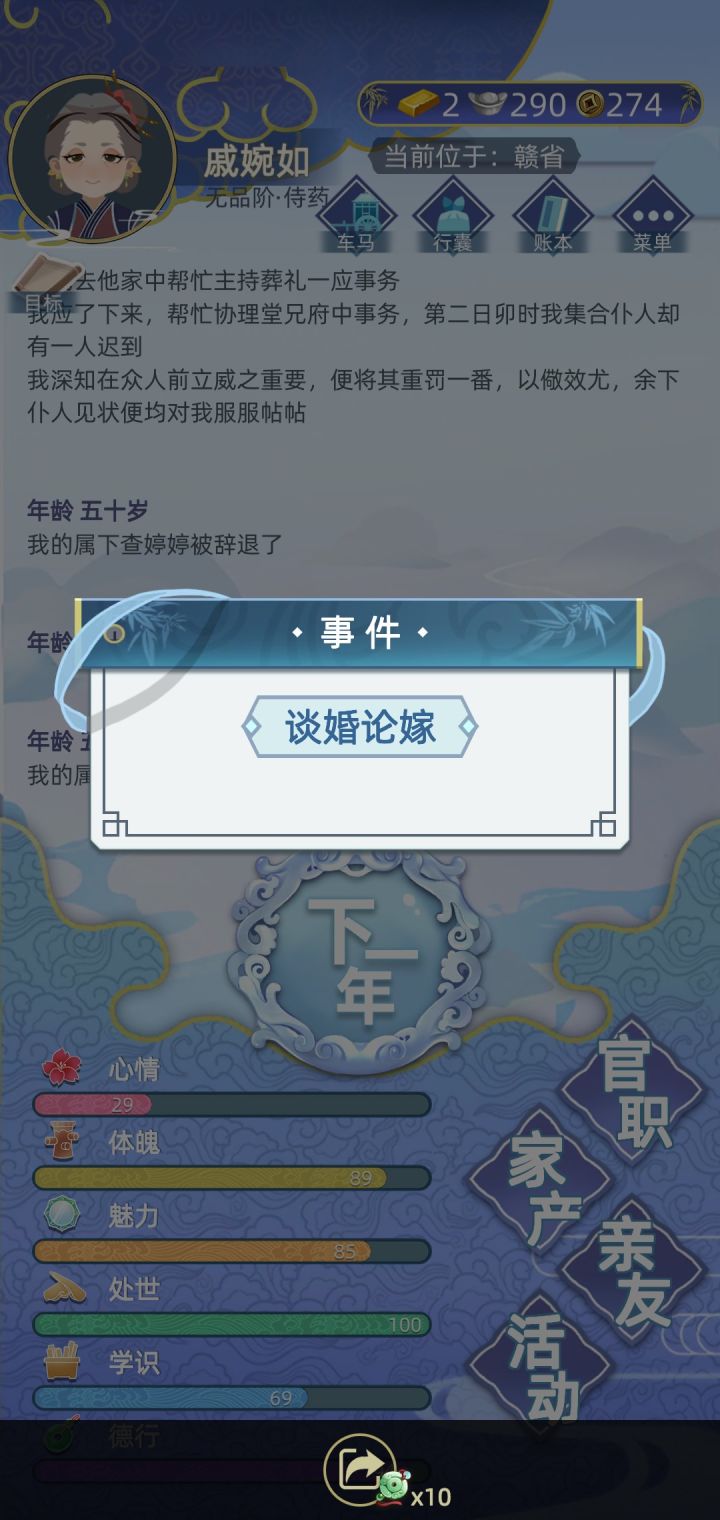 简单来说就是领养一直卡,每次我就刷到五十多岁就突然跳出一个事件,就像这样子卡着,退出去再进去,就又是三十四岁,咋搞啊
