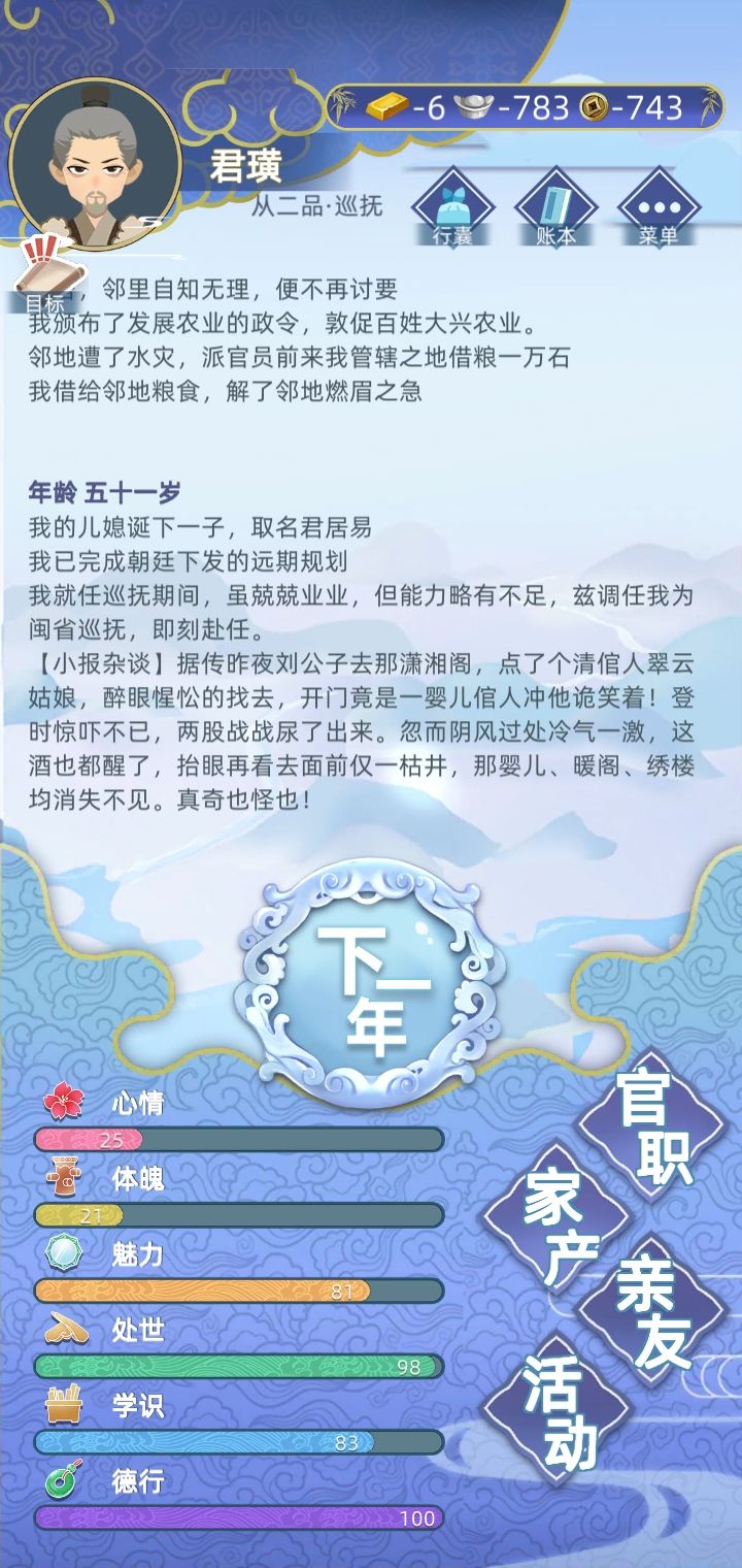 不让学医的设定是真的恶心。再多钱都没用。反正就是不让学。运气不好玩半天都没办法完成学医的任务。转生几次都没用。搞笑。大茶师、大弈师,钱柜几千金,养不起一个医生。这操作真的秀。