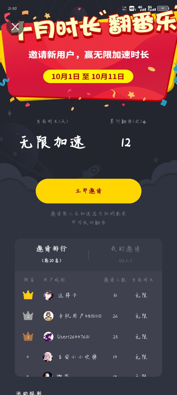 好,我也得了,无限加速!😆只要拉12个人就行了