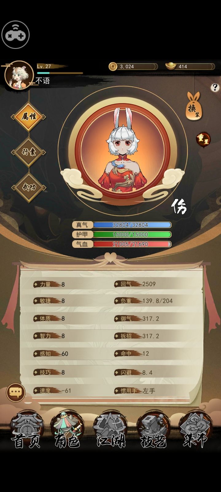 战斗中,进入下一回合的速度可由自己此回合所使用的武学对应的武器改变。如图所示,我惯用左手带-50速度的刀,右手带+30速度的扇子接下来是实践成果,以自身结束第10回合作为stop(对面为禾兴城木桩)1、只用刀法,落后了一个回合数。2、只用掌法(对应武器为扇子),领先了两个回合。3、掌法、刀法,二者轮流使用,领先回合数介于前两者之间,领先一个回合数可以看出,不同武器的使用,确实可以带来速