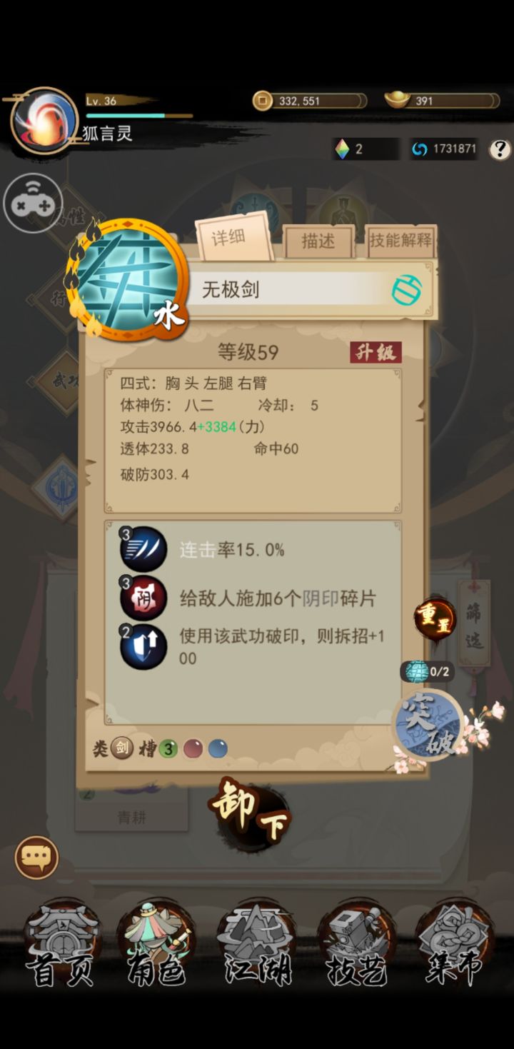 开局完成引导,之后去临州主线过了,把所有功法都看一遍,虽然说是可以随意买功法的,但是进了一个门派,玩法基本锁死!!无法灵活变阵,所以三思而后行,只推荐破道剑、必报枪、昆仑毒如果你要问什么pvp玩法无敌?答案就是必报反伤刀!血量巨厚!以血换攻!天克破道剑!唯一的天敌只有百灵阴阳印(固定百分比扣血和固定损失百分比扣血),但是印不是必中,倘若功法没有命中那么就没有印,而且两者都是成型困难(过于偏后期)