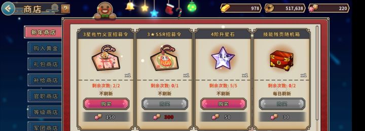 1月19日16点维护之后新年兑换商店开启,开放时间1月19日至2月5日0点,不包含19日活动当天共计16天。期间在主线关卡中有几率获得新年糖果,用于兑换商店奖励。下面我们用数据计算一下这16天在体力不溢出浪费的情况下我们能获得多少糖果:体力获取:1、每十分钟回复一体力,每天自然回复144体力。2、补给商店仅建议黄金购买两次体力,消耗300黄金购买60体力。3、等级商店20000铜币购买10