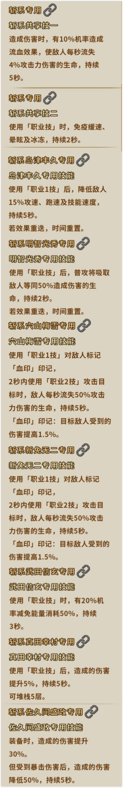 笔者玩了快一个月,在修罗难度还差两话通关,基本上都有些了解。总想说点什么,好让这些经验分享出去------下文仅代表个人见解,如有误区请不吝指正一、斩系武将SSR新免无二被动:减30%能量消耗1技能:跳斩4下,施展速度快,我一般用于推图时清群聚的枪兵、弓兵,丢完就跑2技能:左右开撸12下,关键是施展时自身不能动,推图清盾兵或者硬刚都可以1辅助:铁甲圣域,顾名思义----使你变得稍微硬一