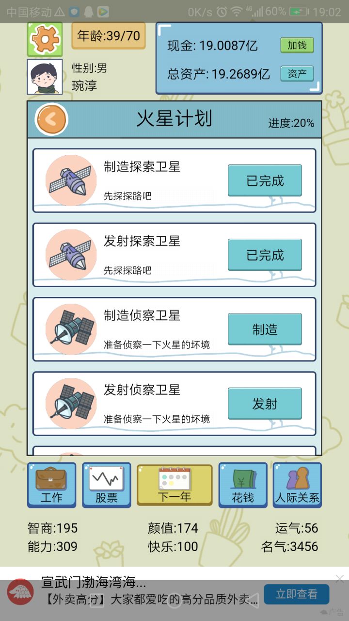 就是那个按钮 要点了 等很久 才会下一年 其他的按钮也是 要加载很久 其次 因为看不到广告很多功能都没办法玩 不能继承家产之类的 体验度大幅下降 本来挺好玩一游戏的 抓紧修复啦