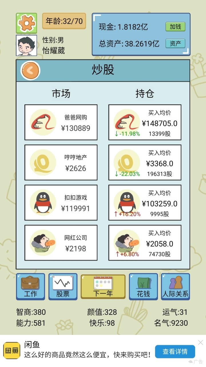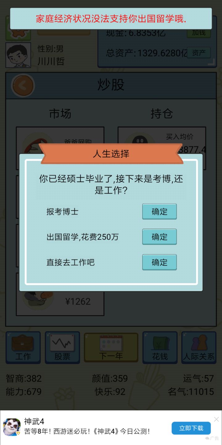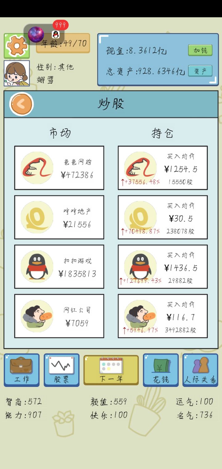 到了后面经济起来了,无脑刷股票,涨了就卖,亏了就买进,到了后面一个人我可以竞选4次总统,到了后面可玩性不是很高。