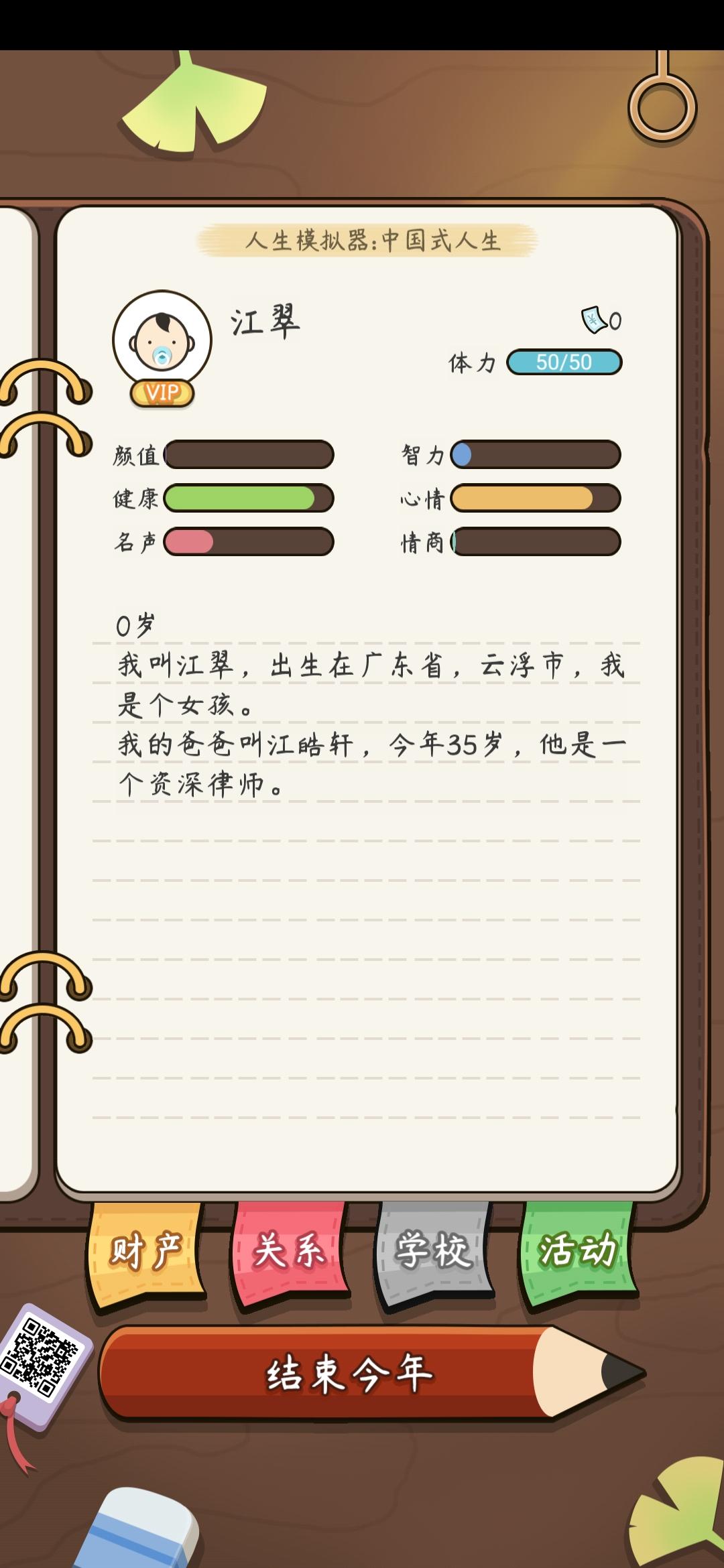 这是个什么破设定,我第一把关系里面只有一个爸,我生下来第二年说他恋爱了。四十多岁来了第二春,我忍了,我长大了做了律师,做到40多岁还是助理律师,离开学校了之后就没什么东西可以增加智力属性了。。。让我不能升职,第二把我的关系里面又只有一个妈,我出生第二年给我说我妈怀孕了???你没搞错吧你