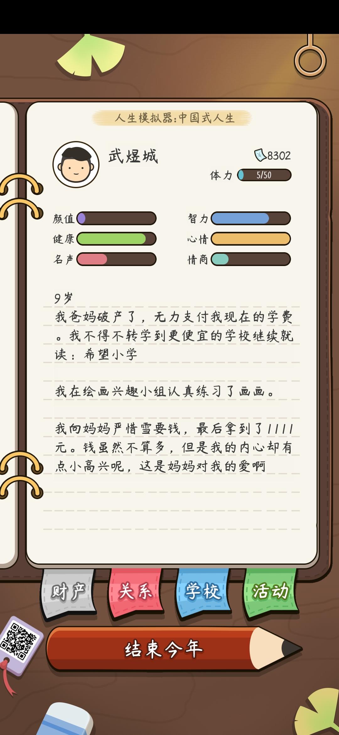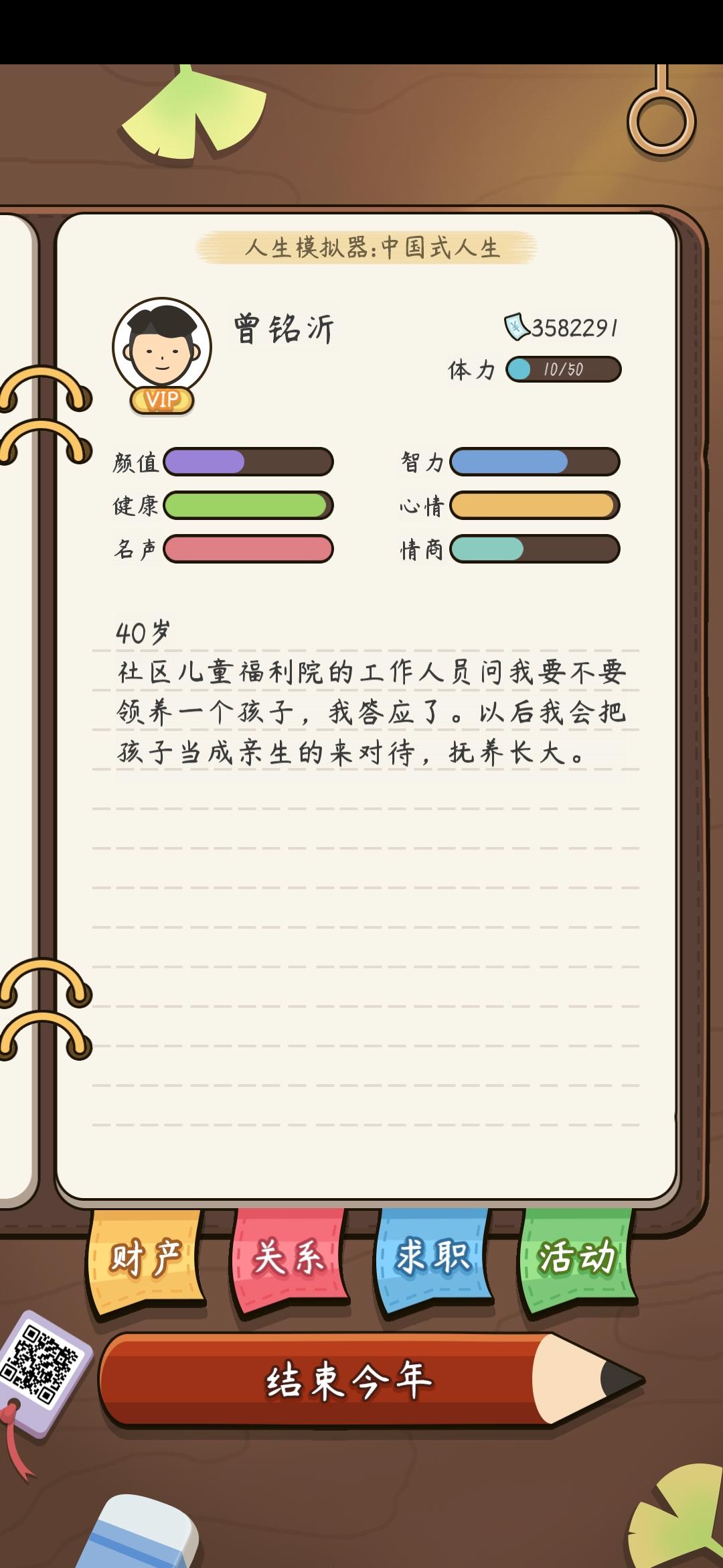 后面一直闪退,还有玩的第一个人物在19岁之后考上大学突然又变成18岁然后再19岁,然后莫名负债搞的有点尴尬,希望优化