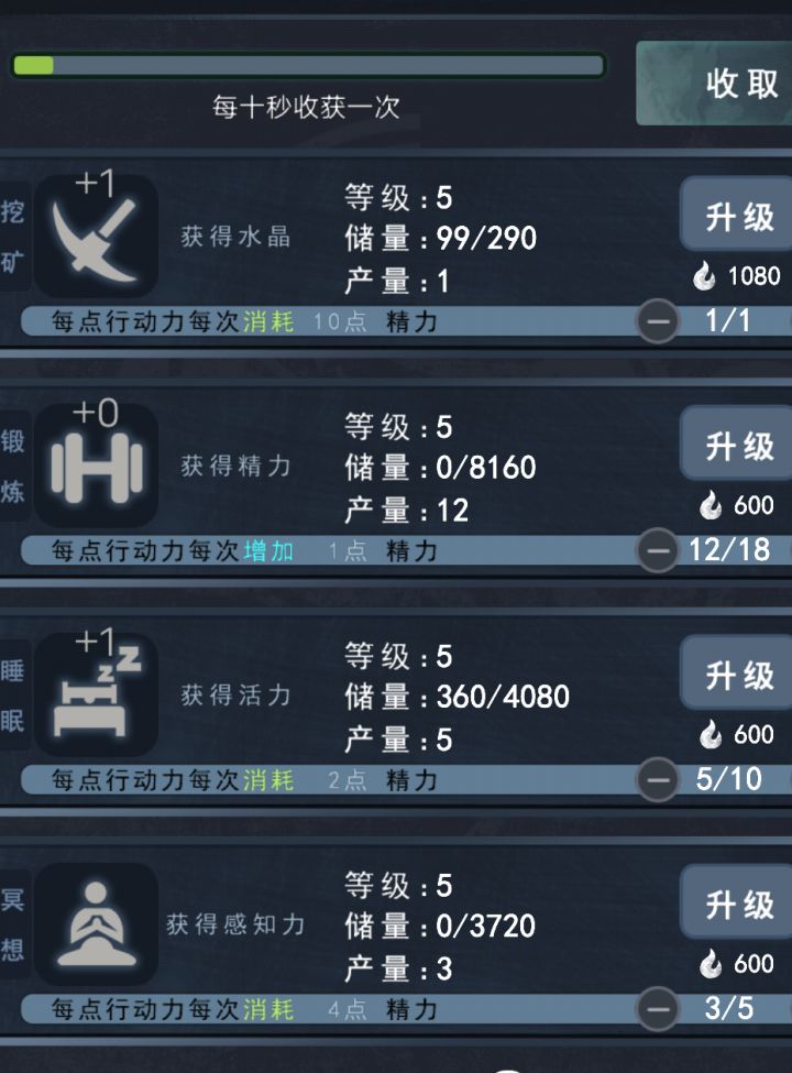 精力和感知力都是0收获为什么?