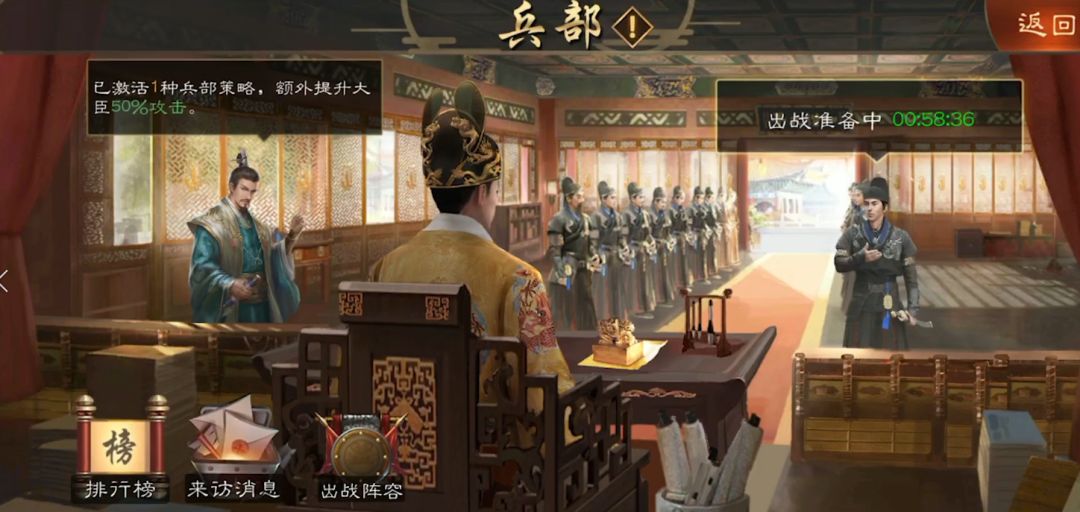 发表一些本人的看法,不喜勿喷。玩的过程中有看到挺多人问战役在哪里的。先点击太孙府里站着的那个官员进去之后右下角。还是太孙府,能征收的时候就征收,因为后面太子会介绍官员第一个任务都跟征收有关,而且征收次数可以完成成就可以领东西,前期不氪基本上除任务外的资源都靠这个成就了。还是太孙府,站着的那个官员可以打关卡,关卡点打了之后可以退出来。这个是个人比较喜欢的一点不用在那里等。大臣培养的话,前期建议不要