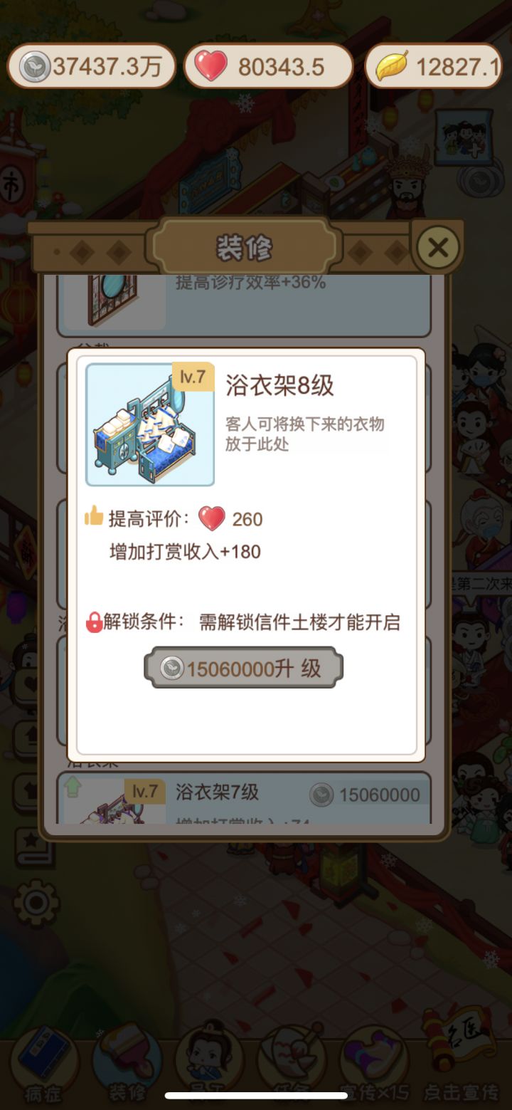 病人解锁条件主要有:声望、病症、建筑、信件、宣传手段,还有餐桌放上他们喜欢的🍎🍐🍑🥝🍋🍊🍌🍓🍉大家都是过亿的身家,安排~~二老爷身上有伤的剧情,请先解锁钱老爷~~