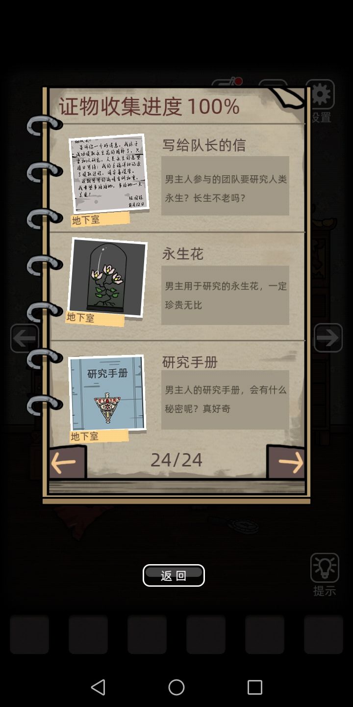 游戏不错,期待后续剧情(想知道谁背后敲我闷棍啊!!!)。玩了很多解谜游戏,这个游戏总得来说比较简单,剧情环节比较连贯,不会出现莫名其妙不知道道具是干什么的情况(就是抓蜘蛛的地方卡了下)