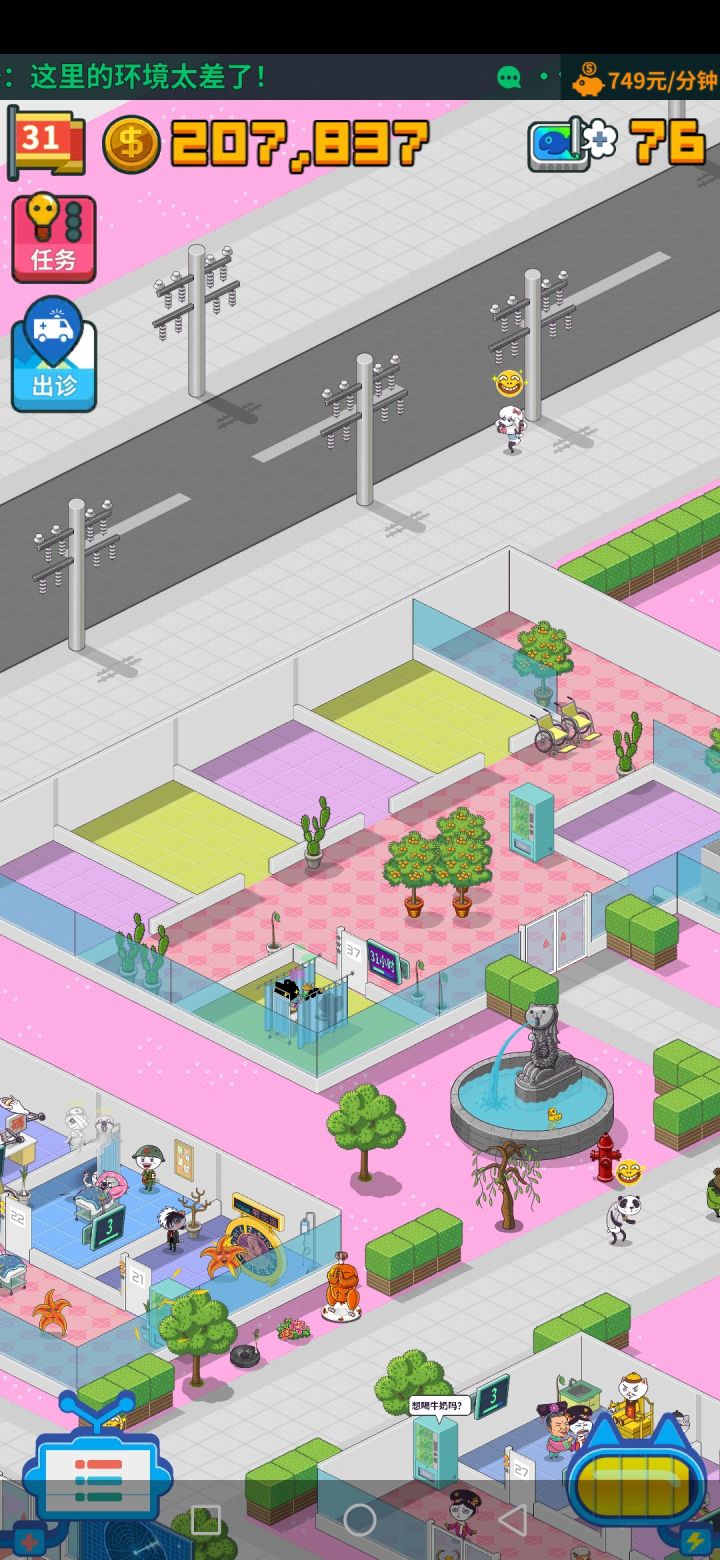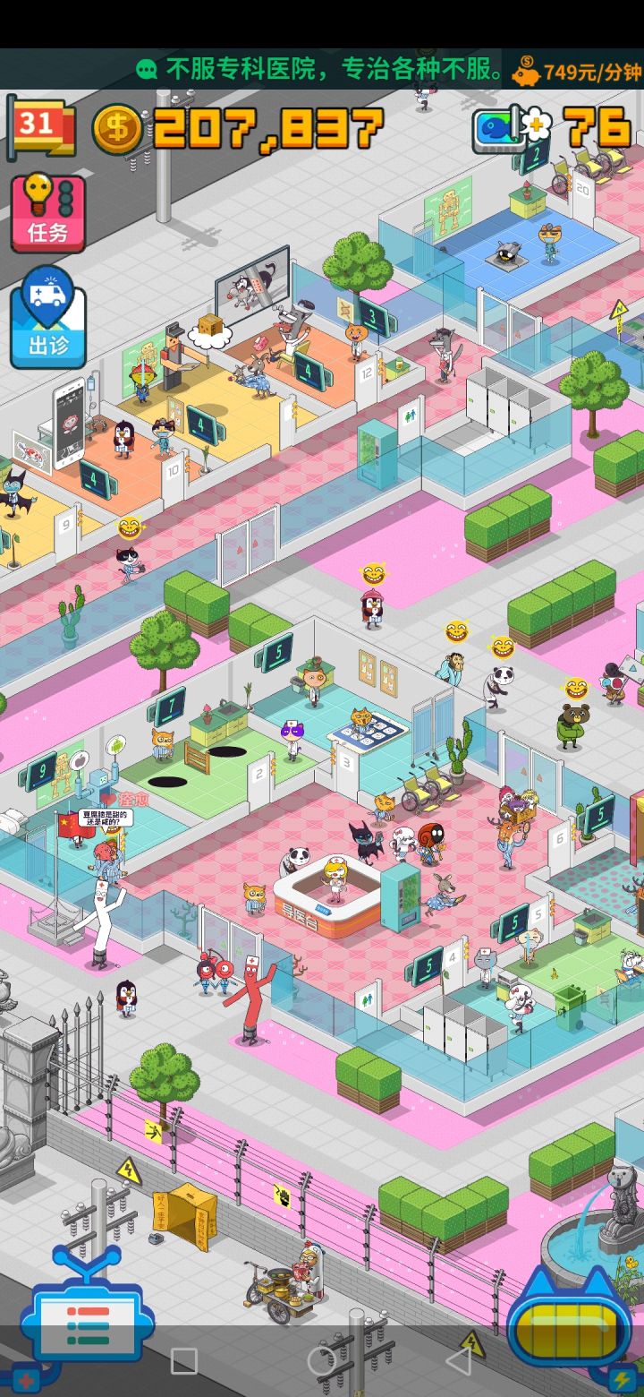 总的来说游戏还不错,建议多加点活动可以看广告,修复问题还可以,我很想解锁完全部诊室再加一点新的诊室,任务也搞简单一点😊😊