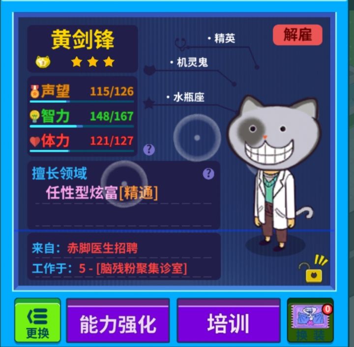 不明白为什么深度赖床工作时间才两小时,十项全能技能值也差不多到底了,还不如前面两个三星强,到底是怎么计算的,还有叶志安的也是,天才不是比机灵鬼强吗,各项值也很高,为啥工作时长啥的比不过黄剑锋,而且他待的是和技能匹配的诊室,黄剑锋还不是适合的诊室,求大神指教!!!