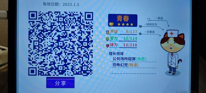 刷了两个暂时没啥用的五星,有需要拿去,不过没有擅长技能那个看技能值都特别高,做任务的好手,四星医生可以拿去扫描外出接诊任务,哈哈