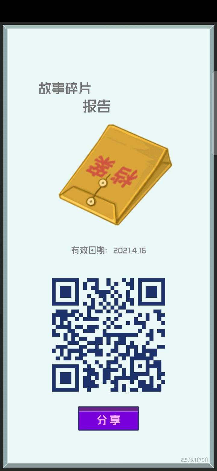 这个游戏前中期要求你扫码别人的医生和故事碎片这个吗还有有效日期,过期作废taptap上一个月也难得见到一个人分享求助是不是证明这个游戏已经凉了?