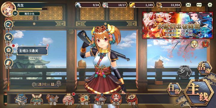 首先就是我想跳大招动画,嗯,我看有人说过了就简单带一句成就!有的时候一个红点在着摆着,但点进去啥都没有嗯,中午的时候还好,没出现这种情况,但是傍晚再玩就有了,我也布吉岛啥情况,反正看着很难受我的初始神将泷川一益!嗯二十抽没出新的……我感觉在打斗操作过程中有点别扭,近战可能不太明显,但想她一样的枪炮类人物,放技能的过程中,点一下技能键使用技能,在蓄力还没发射炮弹的时候,去按普攻键会发现人物放