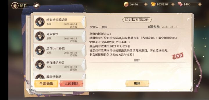 古剑2激活码,我用不到,送你们吧