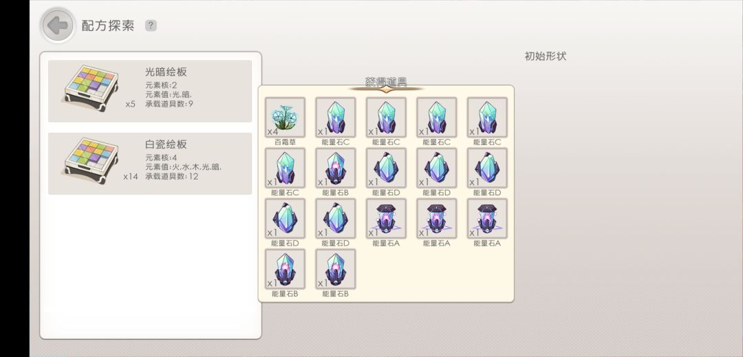 这次测试大家在经过了各种bug的折磨之后,又发现了贼缺金币的问题。。然后群友们开始砸锅卖铁把道具都卖掉获得金币。。直到某位群友发现了配方调配能调配出一堆能量石,光一个s能量石就能卖240块,买一个光暗绘版只要80块,只要材料够就能一直刷能量石卖我随后去实验了下,发现材料用两个百霜草、两个金泥或者两个中级血瓶点亮四个光格时,给的能量石是最多的。可材料终究会用完的,素材商店的道具也是随机的,没有