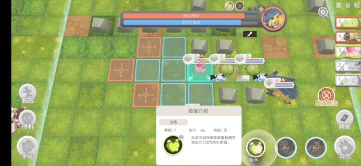 粉精灵治疗Bug技能介绍是100%攻击力恢复我粉精灵252攻只恢复1点血,只有1点(第三张截图是第七轮的,第一、二张是第八轮的)