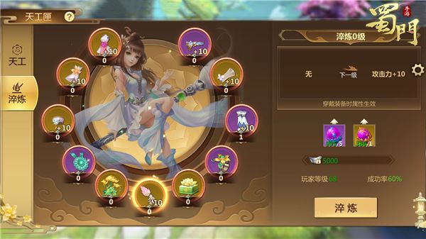 新年新气象,再战巅峰榜。新的一年已经到来,蜀门世界新春“一战封神”版本重磅来袭,各种提升战力的方式也再度升级,玩家们也在不断提升战力以望获登战力巅峰榜。接下来给玩家们介绍几种提升战力的好办法,激发无限潜力,感受战力新提升。【天工淬炼】在巅峰强者汇聚的蜀门世界中,天工匣是玩家们的必经之地,提升战力,附加属性都是极致的存在。当玩家天工精炼至13级时便会开启淬炼功能,天工淬炼是通过大量不同品质的天工