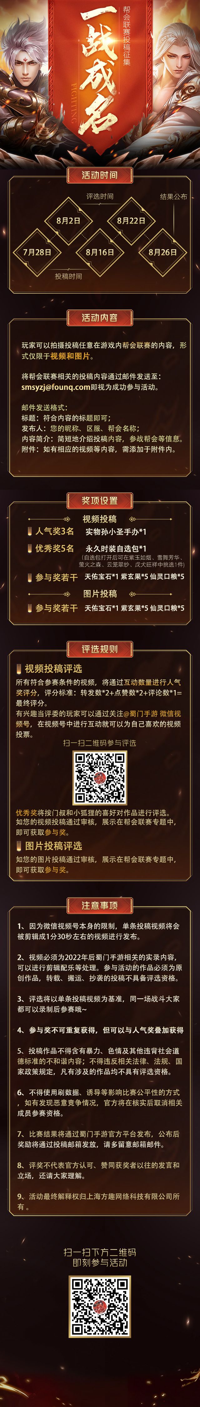 帮会联赛正式赛即将开启!联赛中有精彩的比赛想要跟别人分享?想要让自己的帮会在全服都有知名度?记录下你的联赛精彩瞬间!投稿给我们吧~