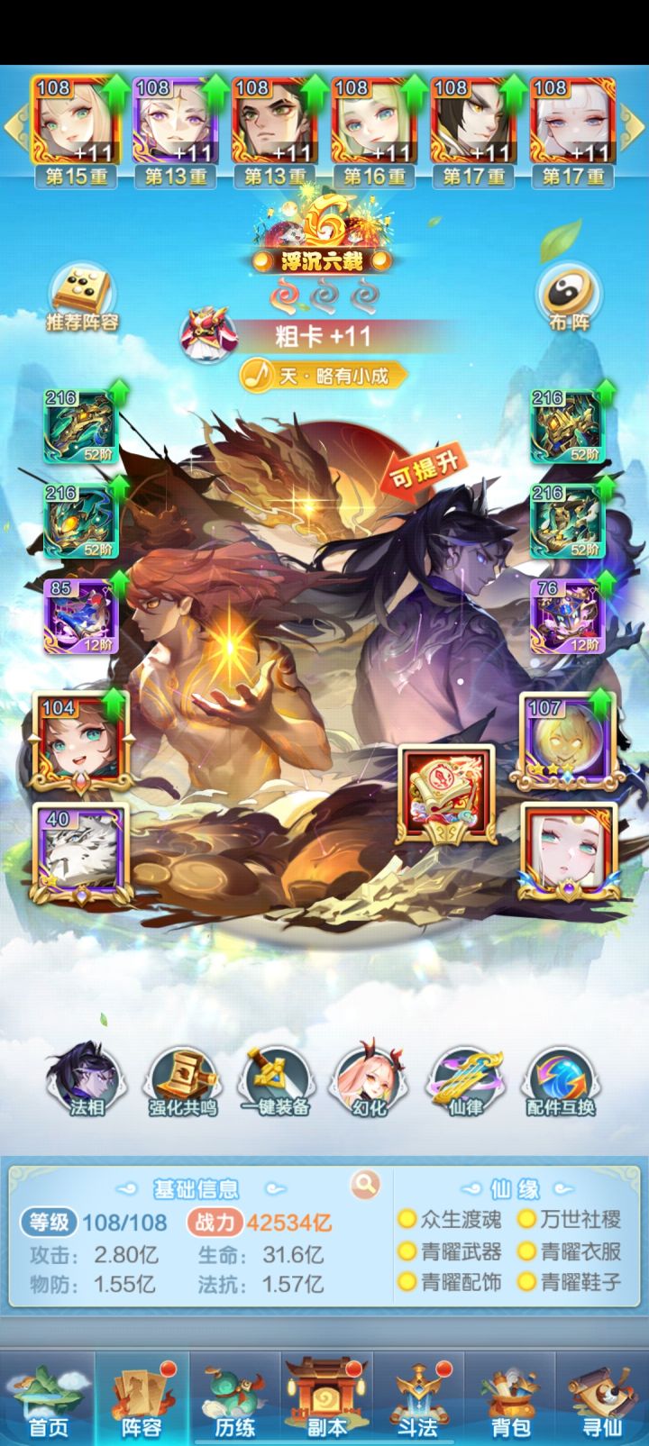 幻仙绘卷是新区涨战力极快的地方哦金色品质及以上的每个幻仙都有两条属性加成其中防御加成 ≥ 攻击加成>生命加成总共18个坑位,可放下三个品质的全部幻仙每种品质的六个幻仙激活属性加成及位置都一样,越高品质的幻仙属性加成越多20级(攻击)+60级(防御)(如上图)20级(防御)+80级(生命)40级(防御)+100级(攻击)20级(攻击)+100级(防御)20级(生命)+1