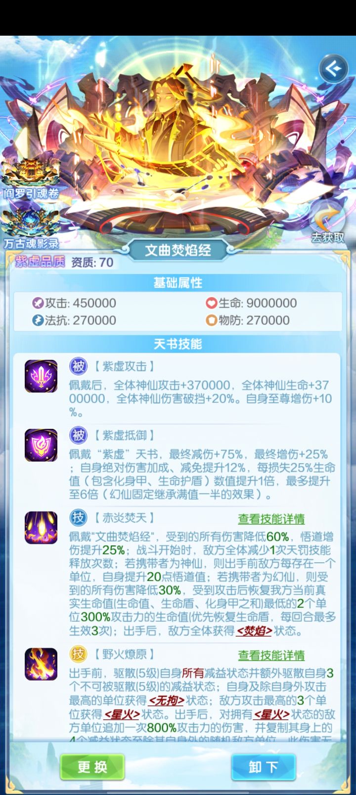 一,定位3书定位辅助,4书定位送死(目前不能送死,天书太少)。3书为同排解控,4书为同列解控,3书主要我方全体护盾+自身降神,增益为主,4书主要是驱散+抵御对方随机两个单位的增益,减益为主。二,特点跟搭配建议3书主要是护盾+两次降神出手。3次护盾,护盾值很厚,对于限制妖的发挥非常强大,使得幽炎无法在前两个回合建立优势。且自带神焰异常抵抗,进一步限制妖。尤其对于防御强大的佛来说,防御+护盾=绝