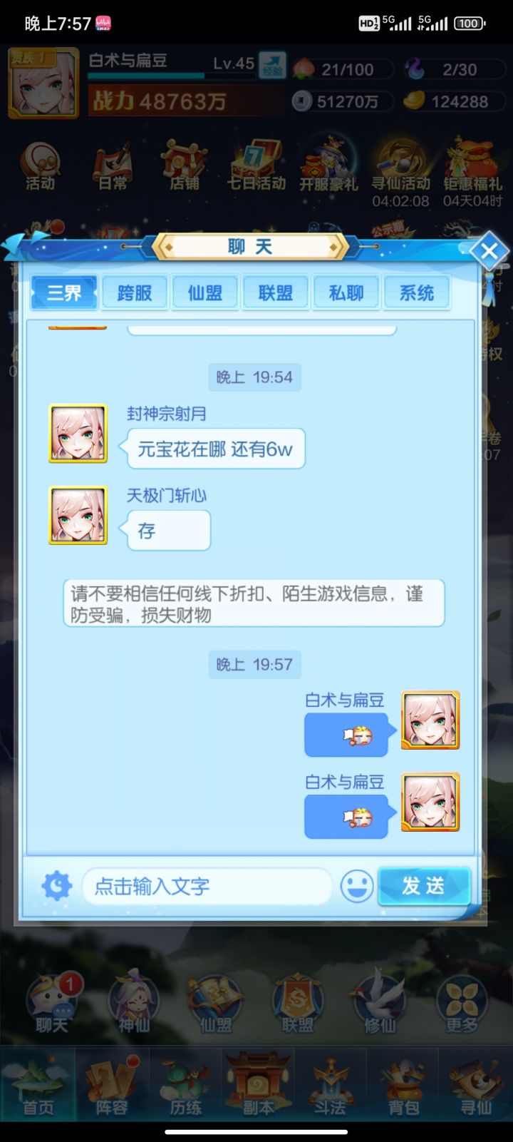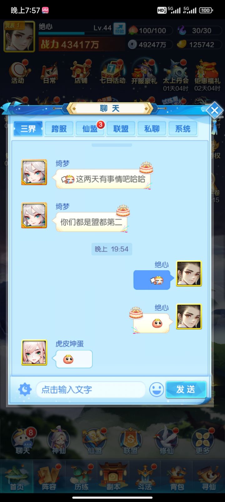 在一个服能发消息换对话框,在另一个服就不能发消息换对话框了(看似发出去了,但退出就没了)图二7:57发的,图三7:58重新登录的#bug反馈