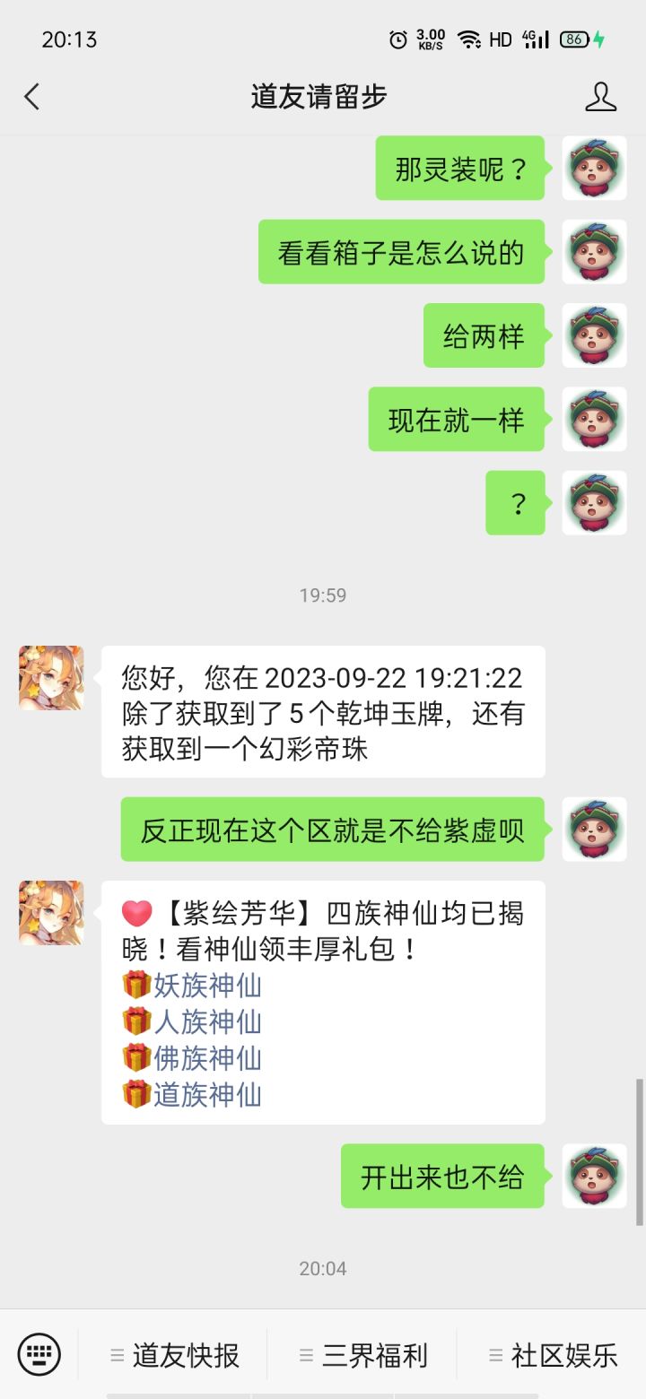 就是说新区不给出现呗,以后开箱得录屏了,看到是紫虚,结果塞一个幻彩