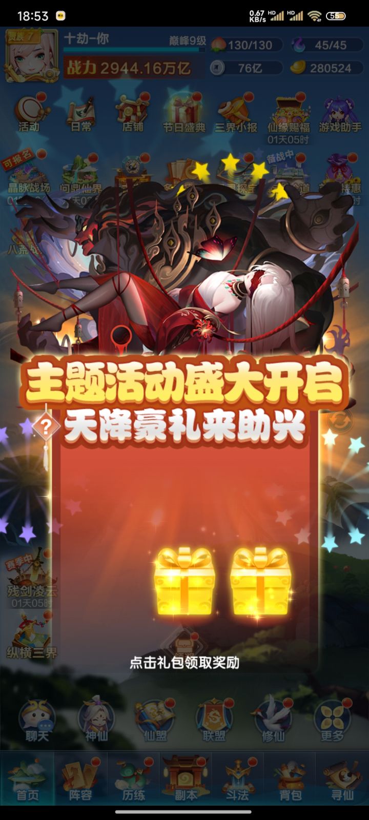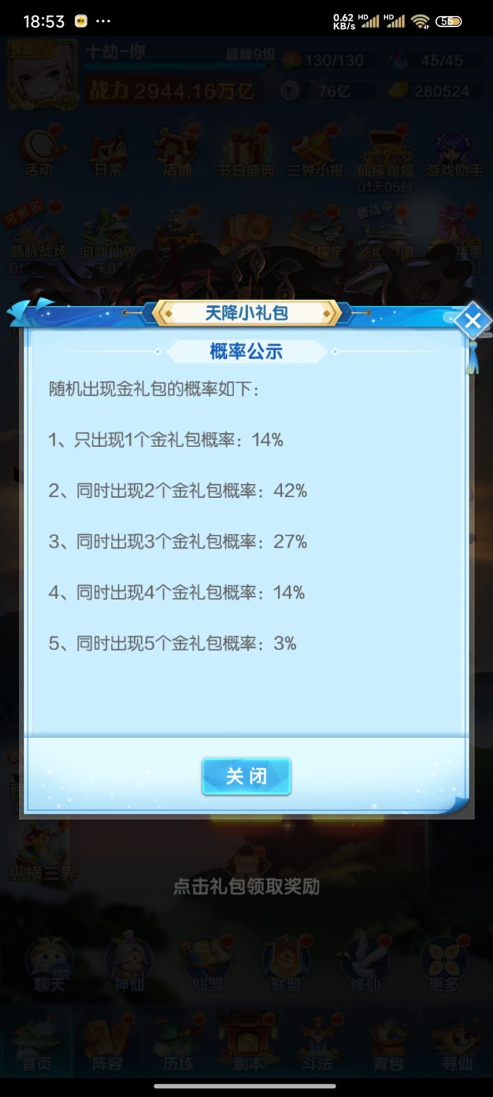 有bug复现步骤:登录进来,点击领取几个礼包。描述:页面卡死在图一画面,只有点击“天降豪礼”左边的小问号有反应(图二)。游戏退出后台,重新登录依旧卡死在图一页面