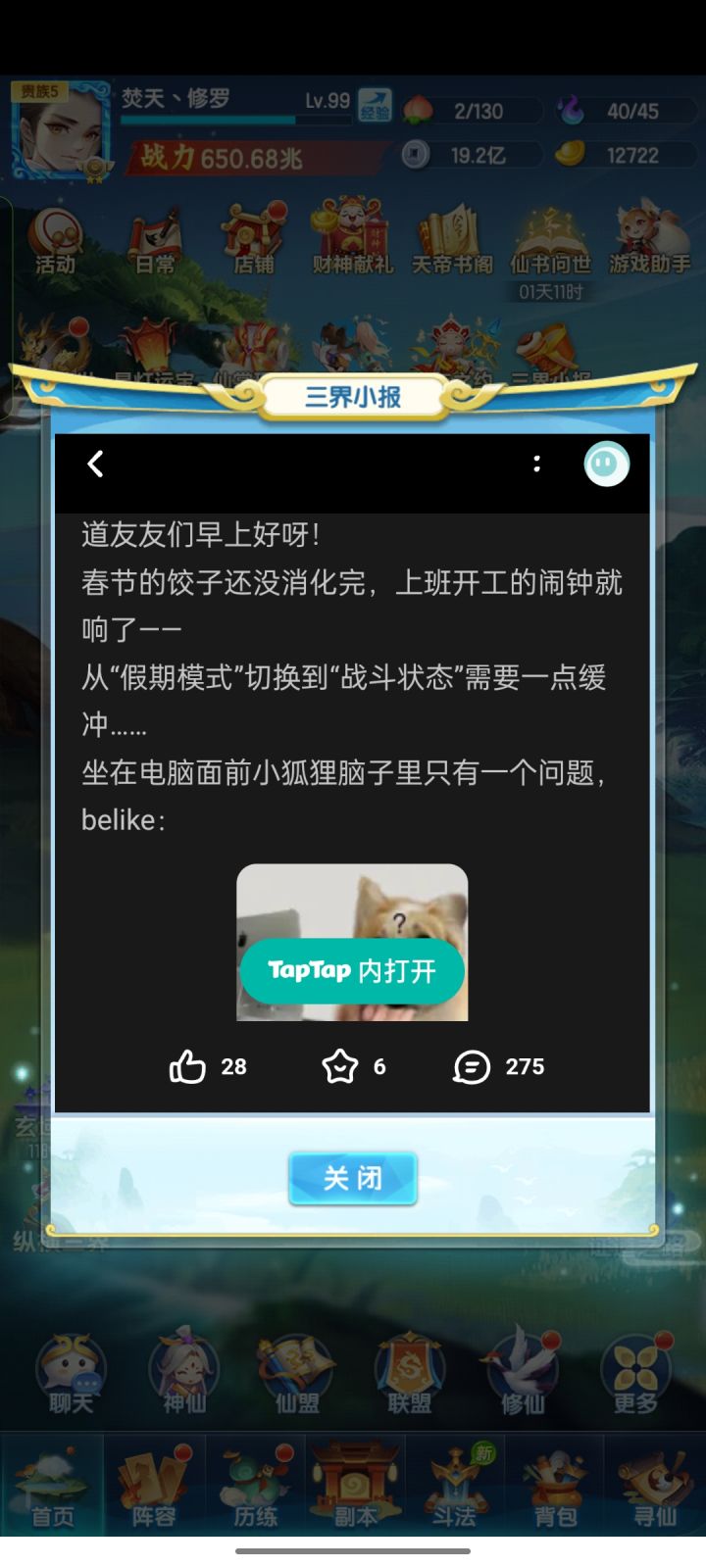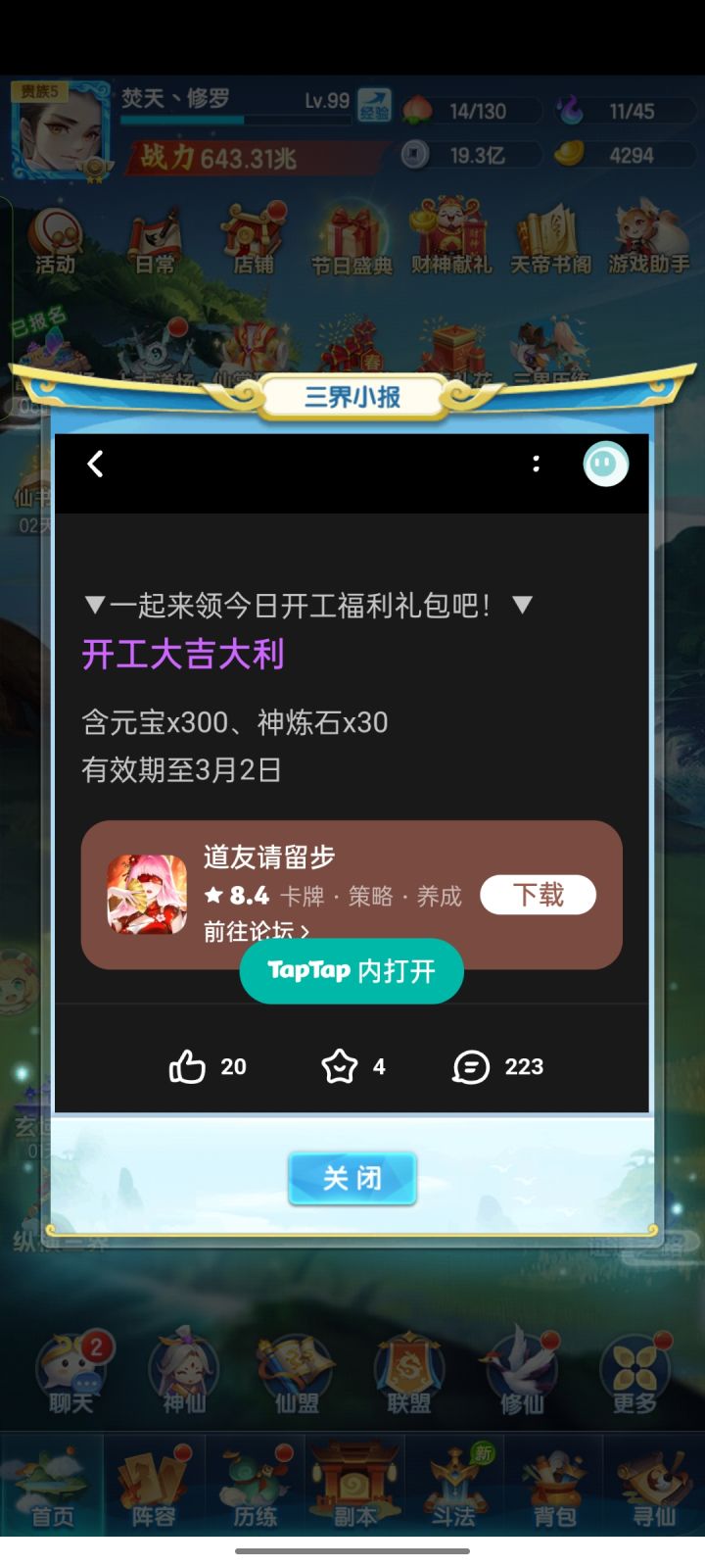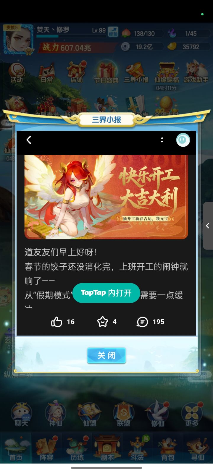 其实我觉得吧,我就算不玩游戏,也会去刷视频,有时候焦虑劲上来了,就一边焦虑一边玩,所以不如快快乐乐的,毕竟是大过年的,玩玩就玩玩,我玩的道友,比较轻松,中途我妈叫我去帮忙,也不会耽误游戏进度,反正还挺好的#游戏讨论 #新年 #道友请留步 #休闲游戏