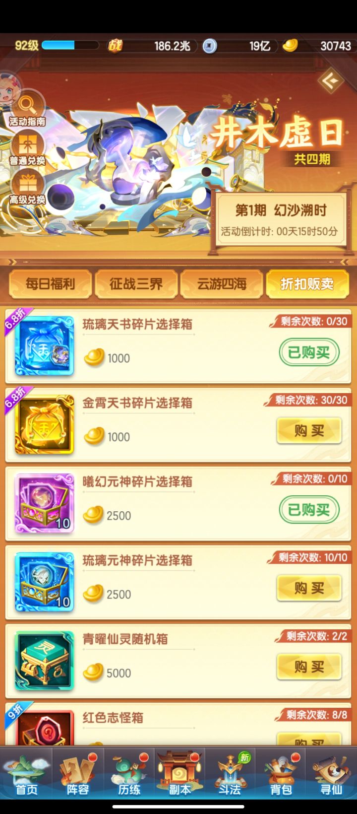 刚出村一个月不到,还有25w元宝现在有0星万界神仙琉璃三和琉璃二,2星琉璃一,下期曦幻神仙,琉璃三能补个1星改这么安排核度