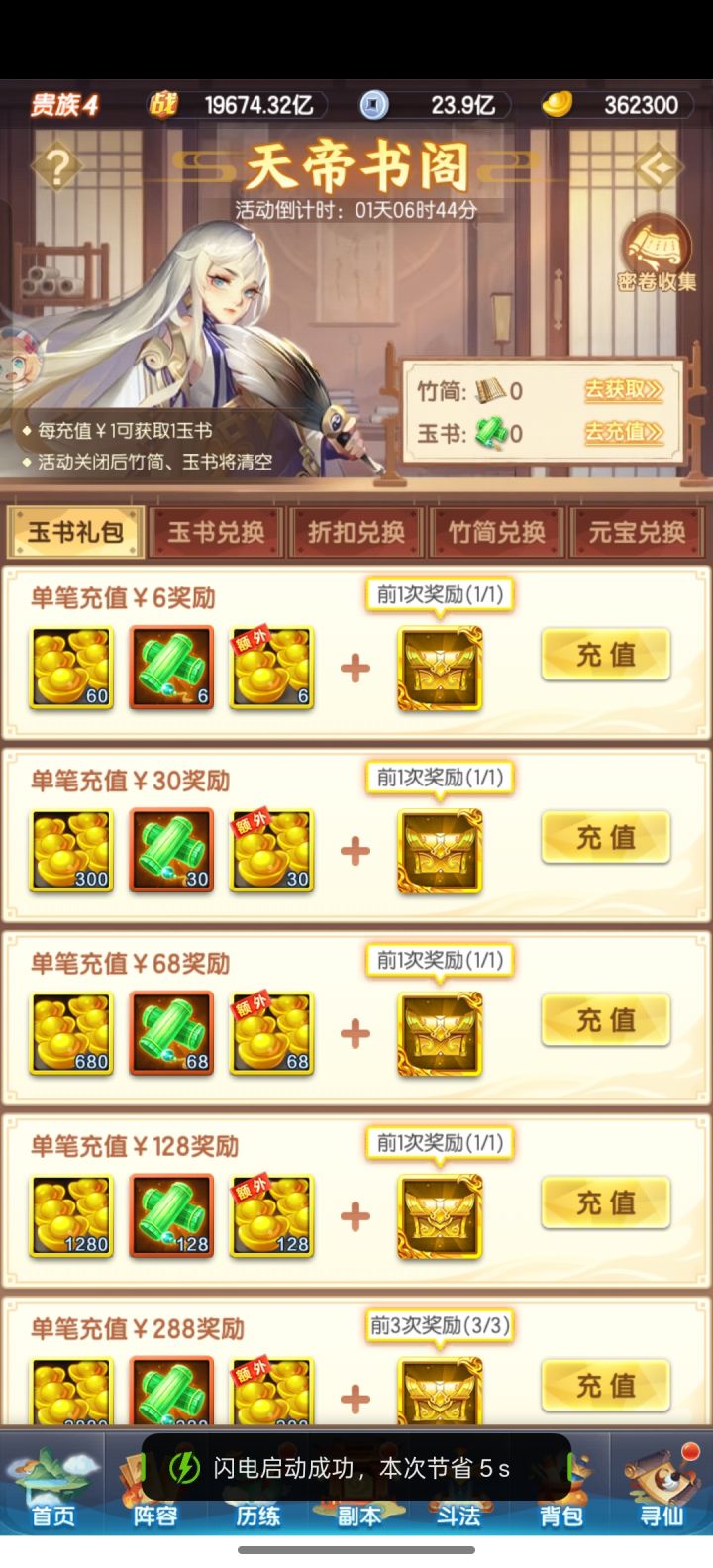 刚开服14天有98个10元累充额度要用在天书活动上吗?如果要用换哪个好点?