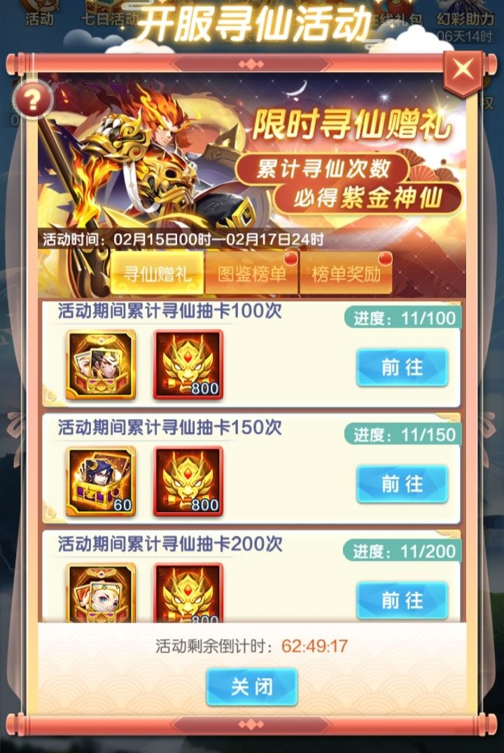 现在白嫖开局100抽就行,第二天150,第三天200。以前开局150抽,第三天会溢出二十次左右抽奖,这样省两个十连元宝。