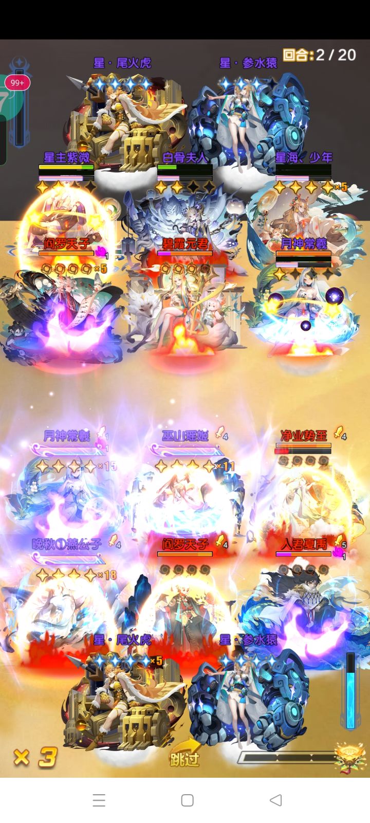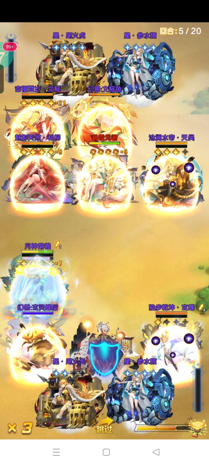 还有就是我方相柳登场一样可以限制对面相柳的输出,也导致了现在回合结束大量出现。