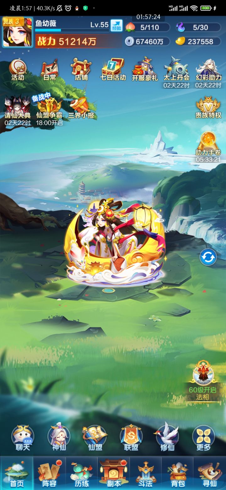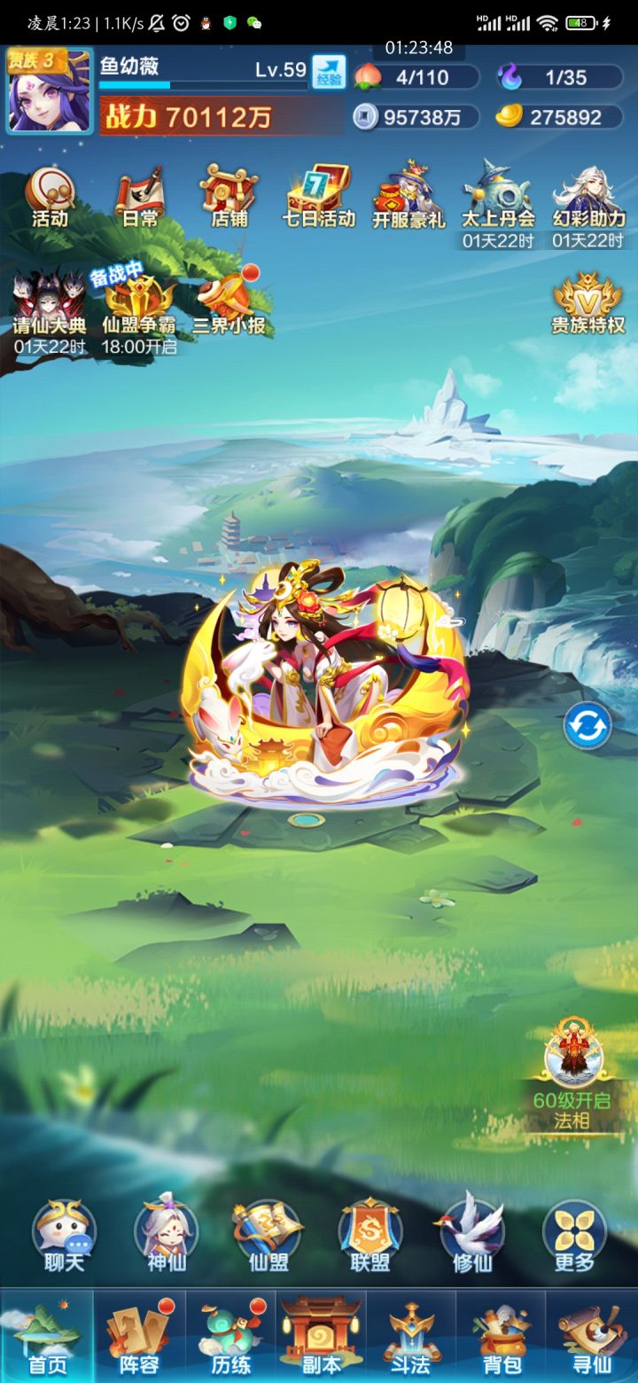 今日的总结,开服5天了,今晚知道2204是首战的时候真的很激动,赌对了!氪了:6首充,30钜惠福礼,30的请仙,6x3的请仙加上45级给的贵族积分以及签到送的,完美贵3,就是没算到55级送240积分,浪费了12块巨款对明后的生活一片光明。然后现在的主力就是我的白嫖三星盘古,盘古yyds!最后附上道友2204-尾区群,欢迎大家来唠嗑