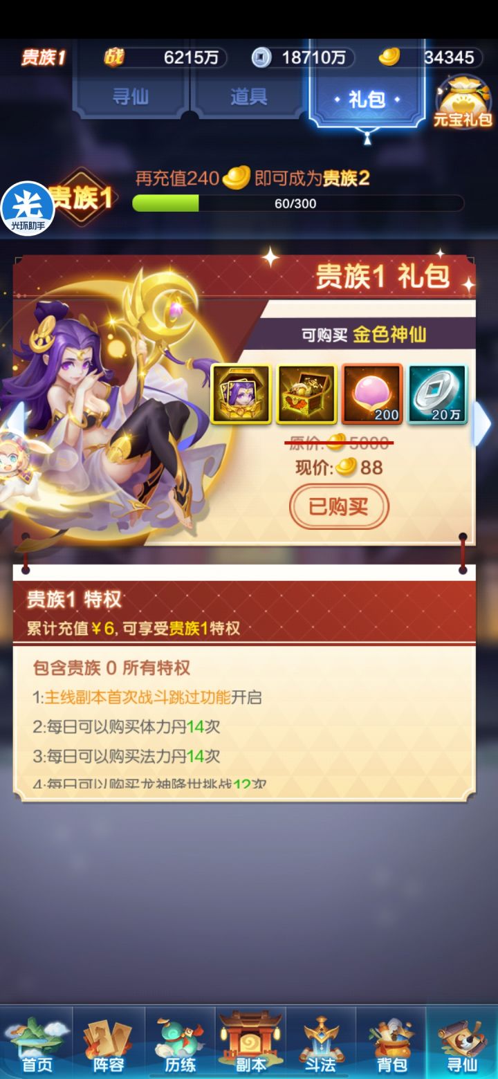 首充新区第一天,个人觉得第一天想拿竞技场排名和天宫层数的可以抽200抽,虽然多花了1万左右元宝,但是很爽哈哈哈哈,基本上开局紫金全齐了,推本也快点,运气好直接能升好几星,前期战力提升比较大,纯屯元宝可以100抽慢慢攒