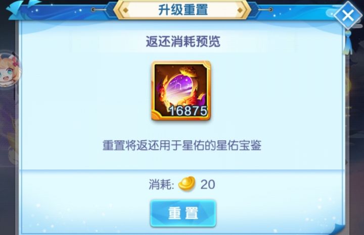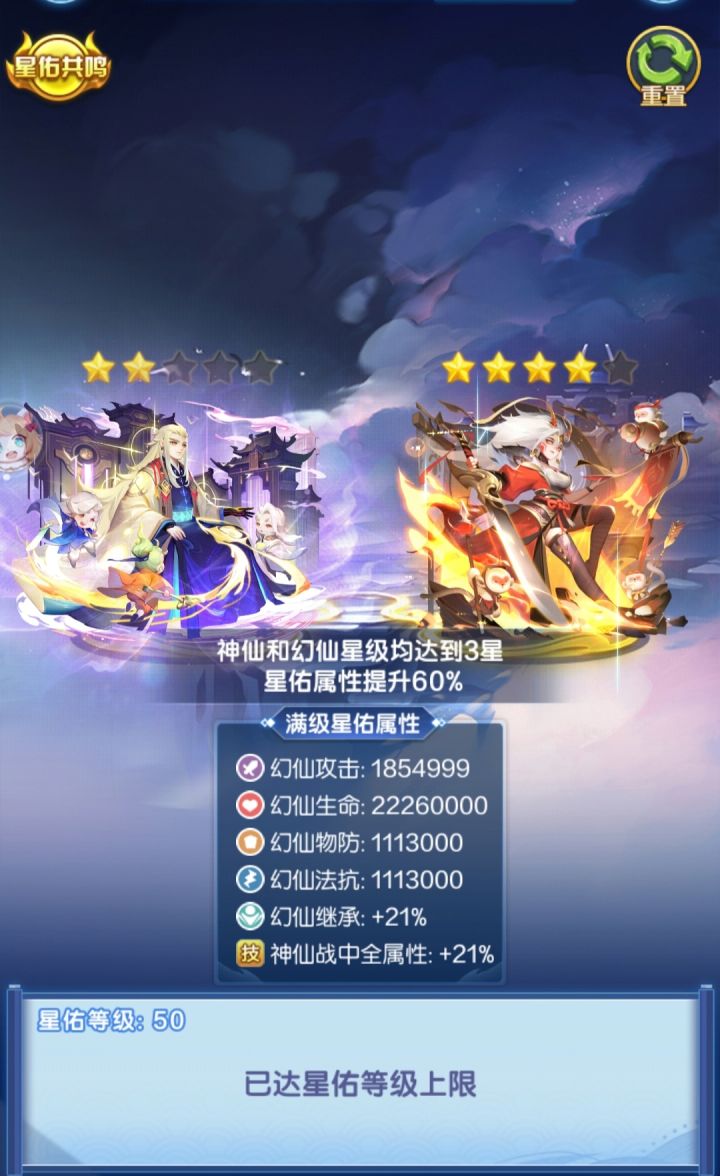 终于升满了一个,之前咸鱼了一阵...要不能更快升满的...星佑满级50级,总共需要16875个道具,需求量还是挺大的...建议能获取的途径都不要落下(幻仙商店每日,每周周末任务,雷道场等),元宝充足的话,主题活动里的也可以买了加快下进度...
