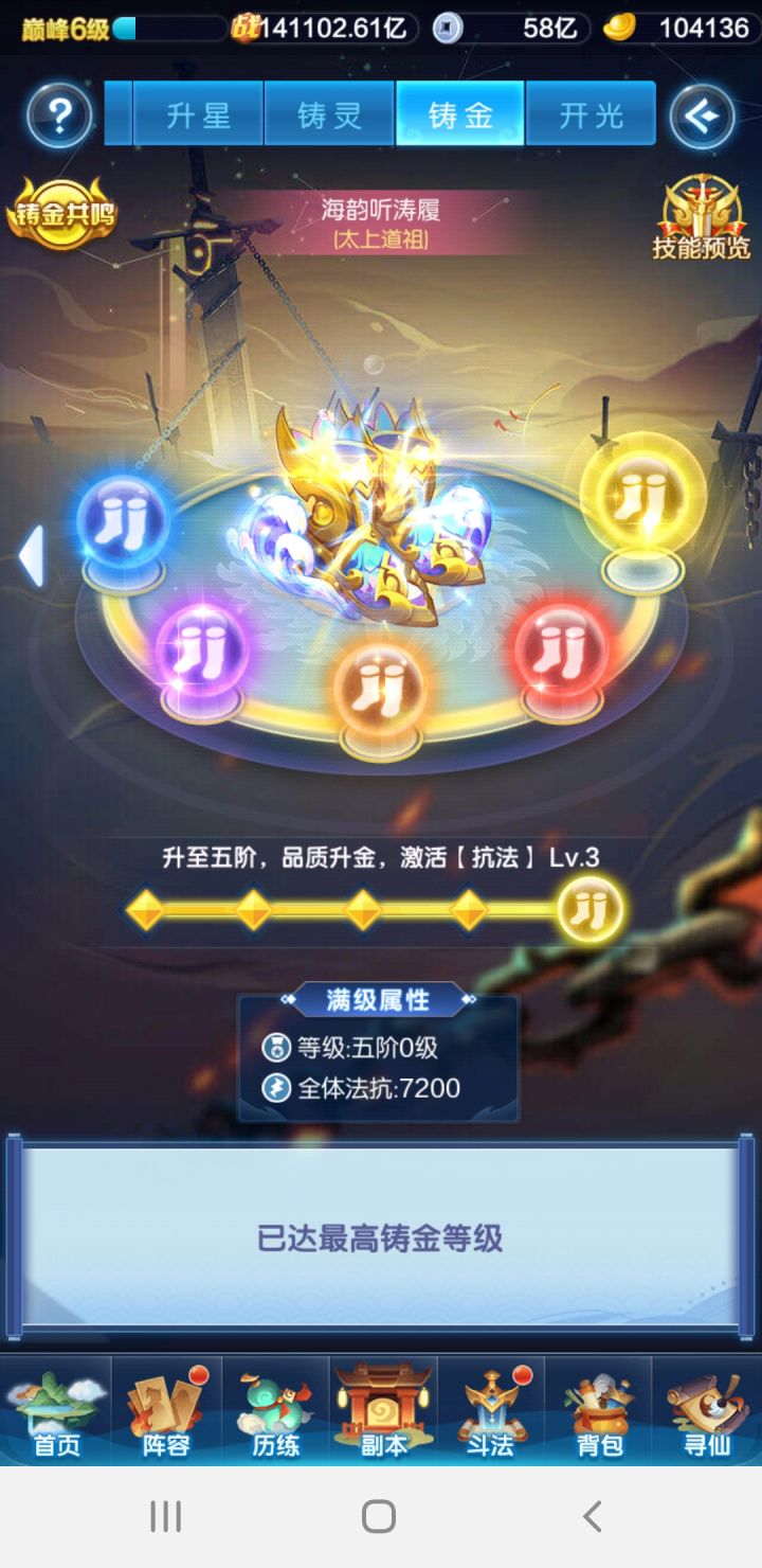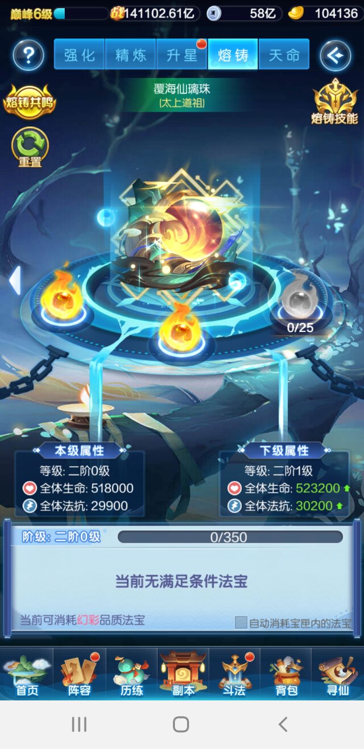 24件装备铸金完成,12件法宝熔炼二阶完成