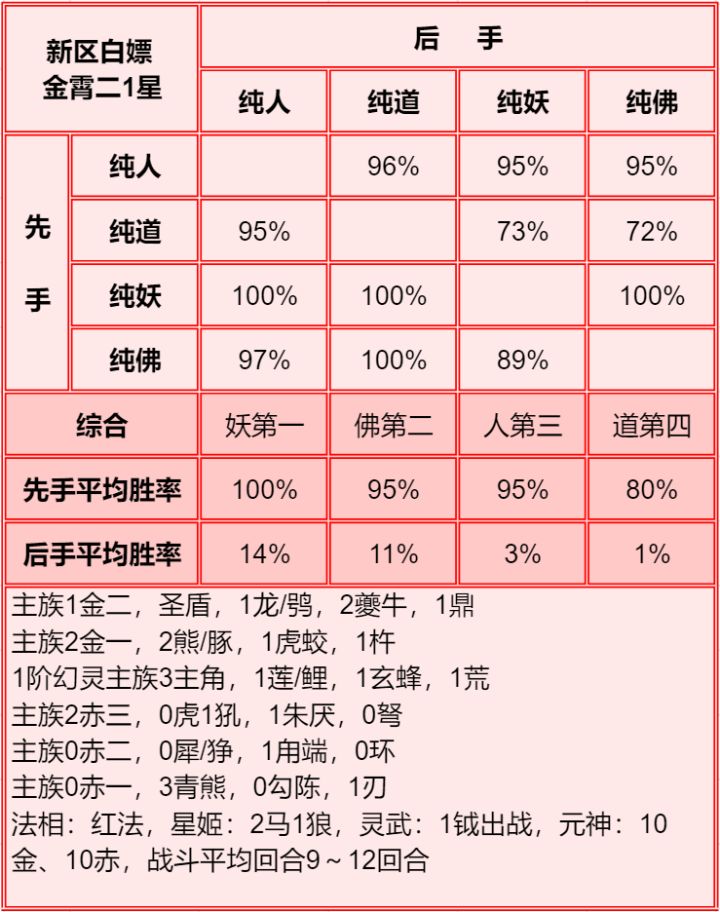 本次测试人员:笑语、画戟、莫邪、IE、诠释了梦、月饮山河、燕公子一、金霄二版本小贴士1.金霄二神仙压制技,比金霄一神仙多了两条压制效果。敌方金霄以下品质单位,赋予的减益效果有20%~35%的概率对自身无效。敌方赤魇神仙领域属性效果降低20~35% (可叠加),只影响数值效果(包括金身提供的增益),不影响机制效果,不影响曜武、幽炎、金身能量。2.受神仙压制技,宠物压制技,宠物、灵武、金二神