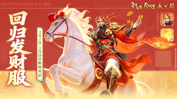恭喜道友,获得【新年礼盒】,奖励已发放~开年超强「回归发财服」2月2日-2月10日限时开放,仅剩3天啦!回归特权加倍,更有VIP积分继承!「北京怀柔雁栖关公庙」联动预热活动全服开启中,全服道友共开金蛋!超多福利尽在回归服,恭迎道友踏金云而归~回归服仅剩3天小狐狸在回归服很想你,于是连夜准备了礼包码给你▼《道友请留步》× 「北京怀柔雁栖关公庙」联动庆典即将开启!春节期间我们将来到关公庙中体