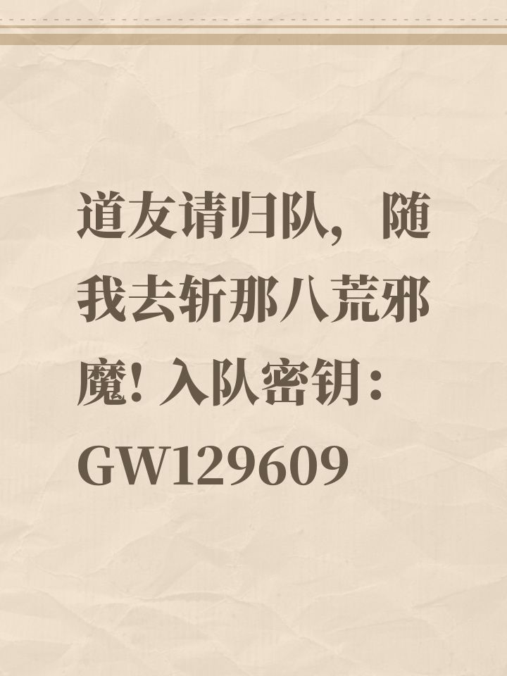道友请归队,随我去斩那八荒邪魔! 入队密钥:GW128636