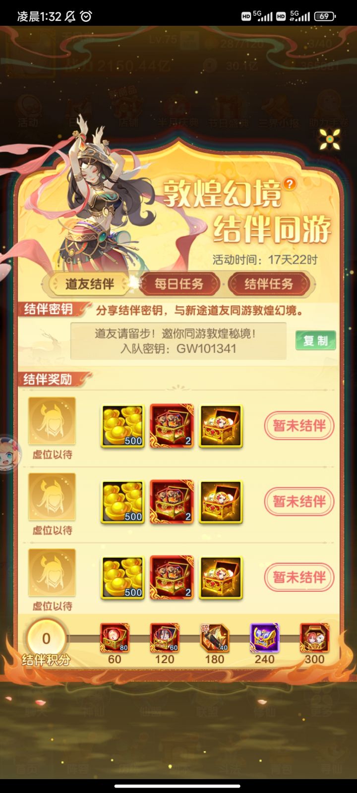 好兄弟们有没有新区的来结伴一下!福利多多!道友请留步!邀你同游敦煌秘境!入队密钥:GW101341#游戏福利