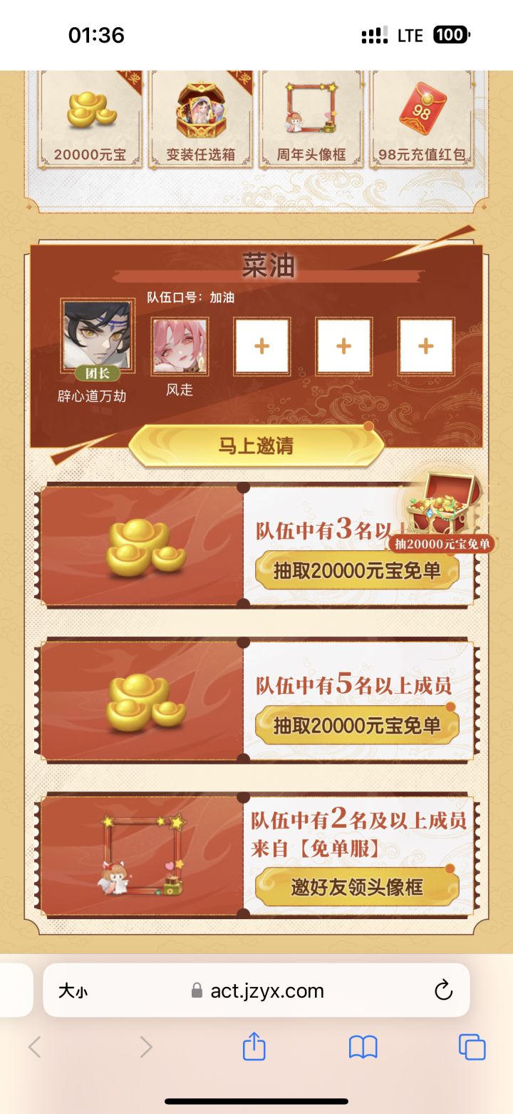 复制加队邀请码【0597661】加入我的队伍【道友混奖励】,一起抽20000元宝和变装任选箱免单!道友请留步八周年快乐!https://act.jzyx.com/dy/miandan/?id=0597661
