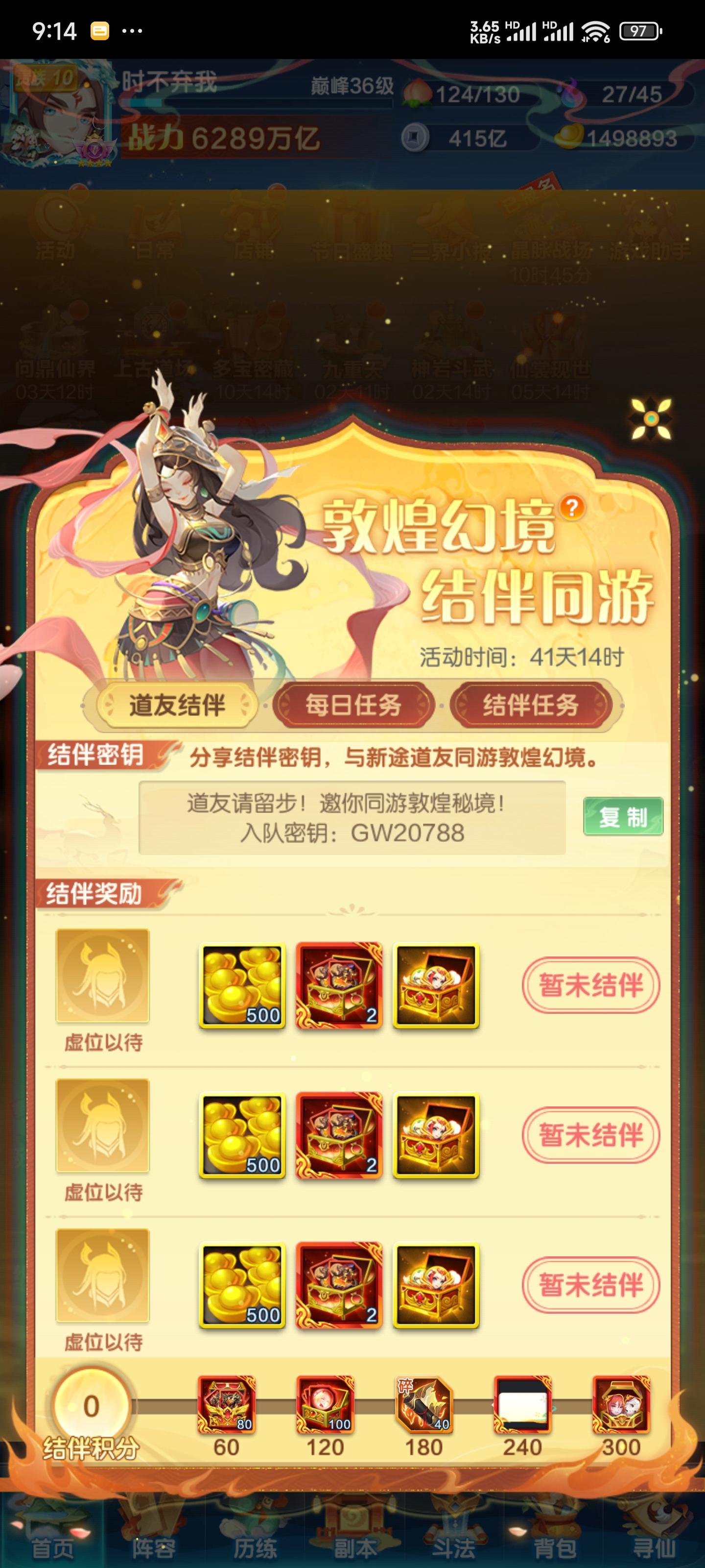 道友请留步!邀你同游敦煌秘境!入队密钥:GW20788本人长期活跃,绝对靠谱