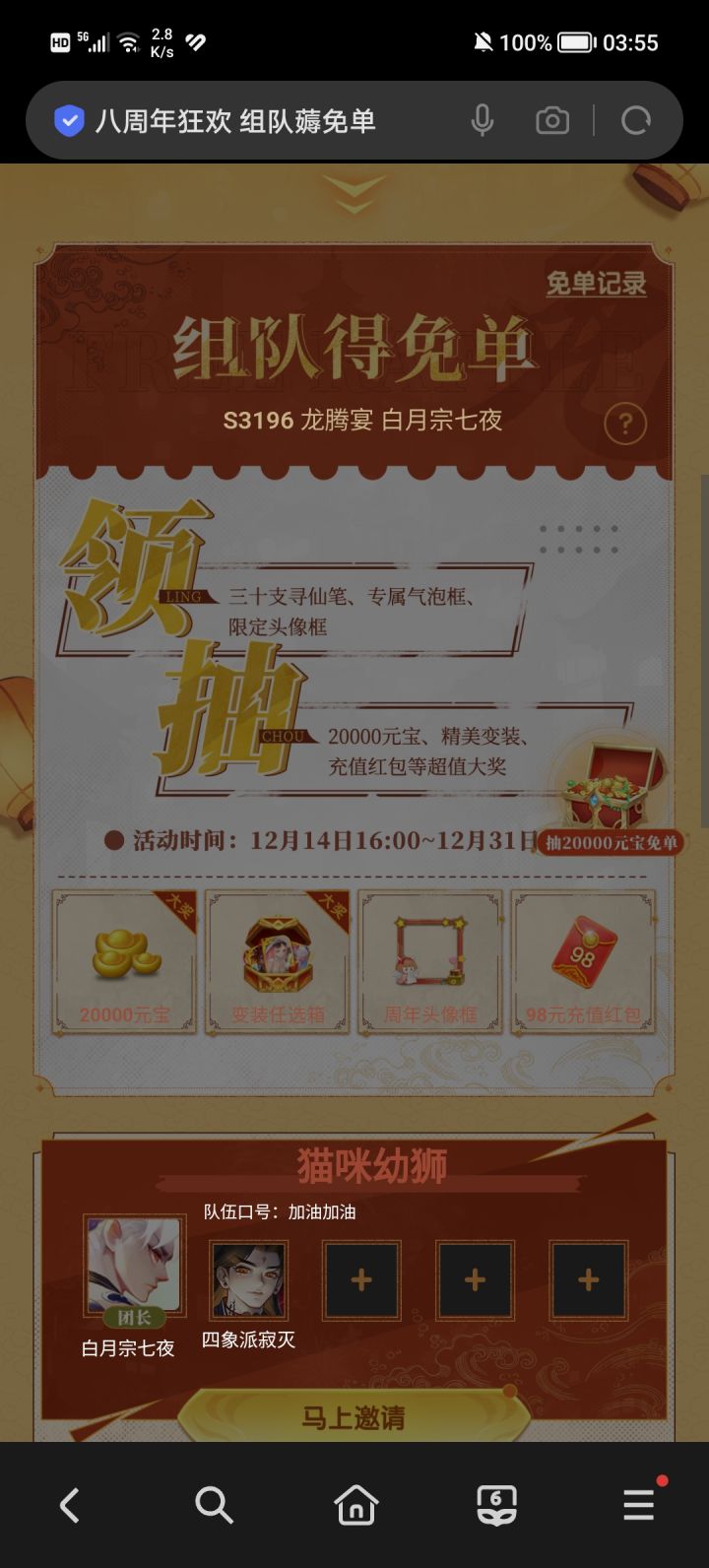 复制加队邀请码【0583563】加入我的队伍【121212】,一起抽20000元宝和变装任选箱免单!道友请留步八周年快乐!https://act.jzyx.com/dy/miandan/?id=0583563