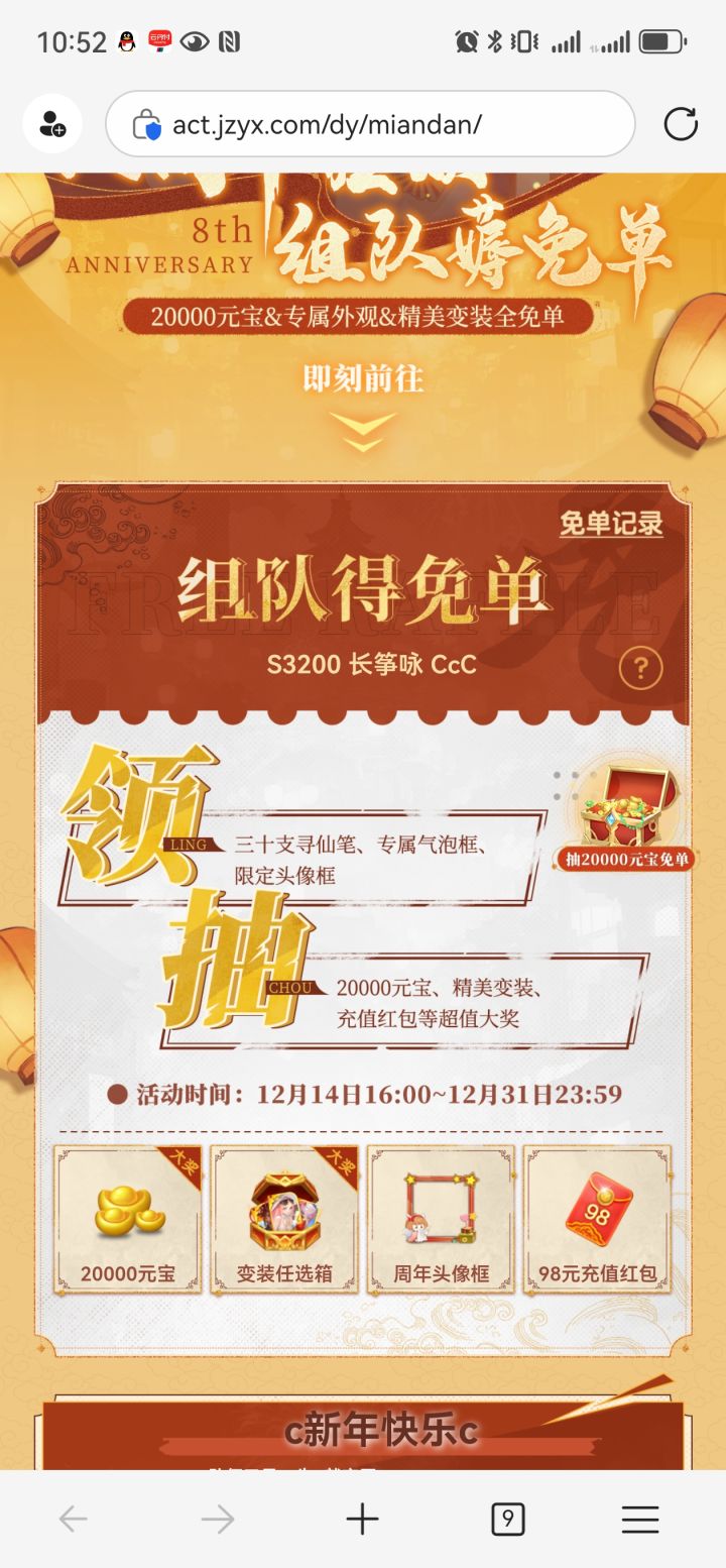 复制加队邀请码【0591894】加入我的队伍【c新年快乐c】,一起抽20000元宝和变装任选箱免单!道友请留步八周年快乐!https://act.jzyx.com/dy/miandan/?id=0591894