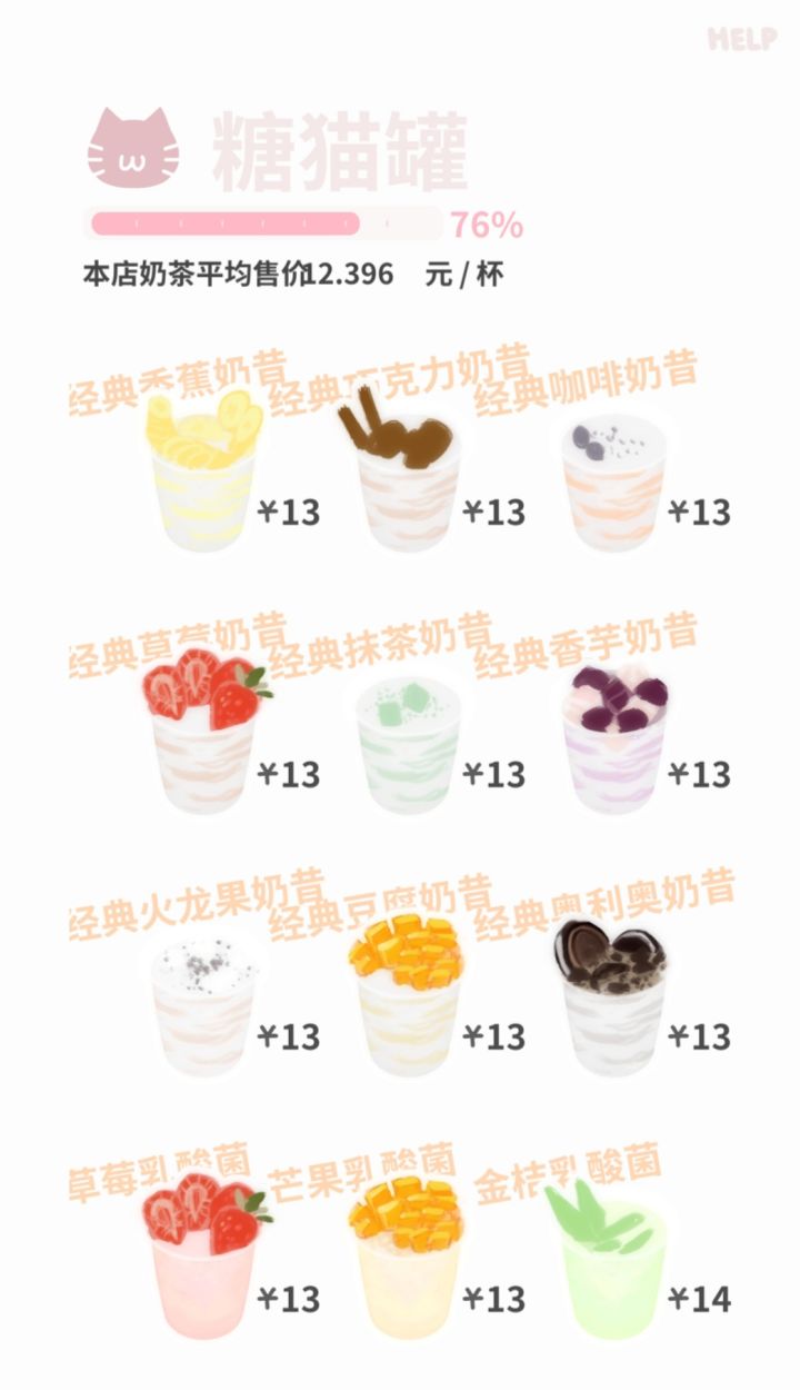 建议另外存牛奶160冰120 红豆,乳酸菌,西米露,水,草莓各40 红茶,抹茶,乌龙茶,咖啡,焦糖,布丁,血糯米,奥利奥,生姜,燕麦,西瓜,火龙果,鲜橙,苹果,珍珠,蓝莓,榴莲,可乐,柠檬各20 升级粉丝爱喝的奶茶到优良一星所需要的珍珠奶茶:牛奶+红茶+珍珠珍珠奶绿:牛奶+绿茶+珍珠乌龙珍珠奶茶:牛奶+乌龙茶+珍珠抹茶珍珠奶茶:牛奶+抹茶+珍珠巧克力珍珠奶茶:牛奶+巧克力+珍珠