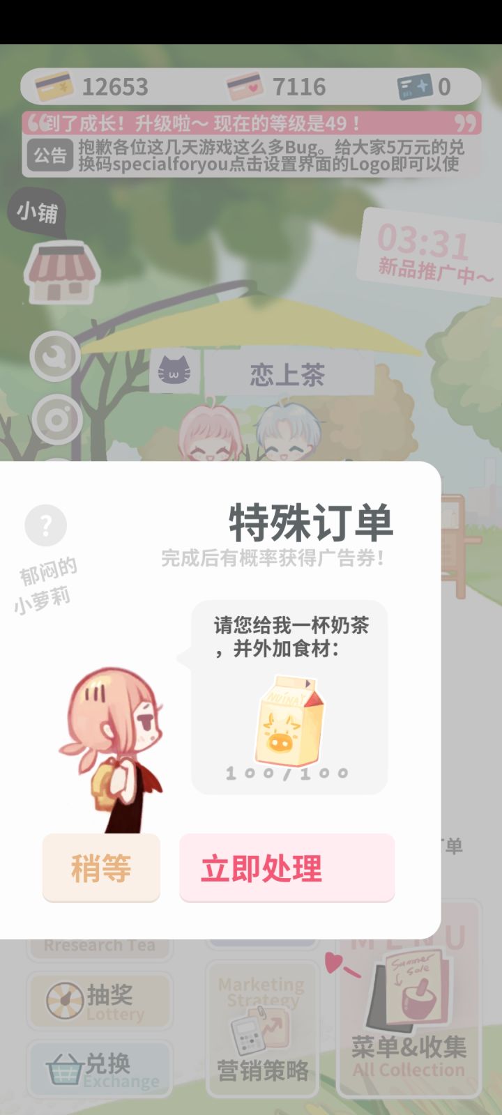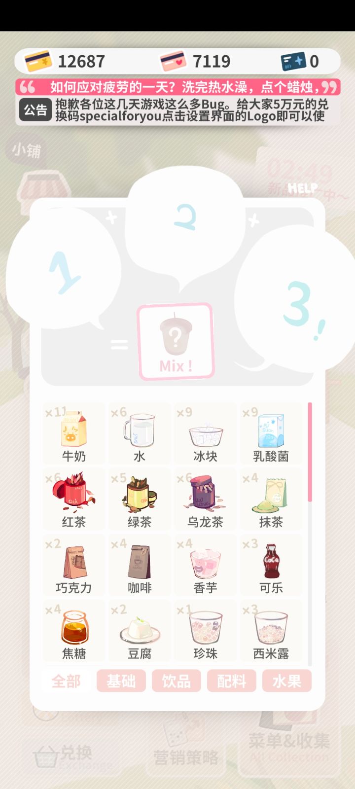 点进菜单后,点击奶茶,点击任意一款以后无法返回,只能同归左右的键来切换,最后只能退出重新登陆