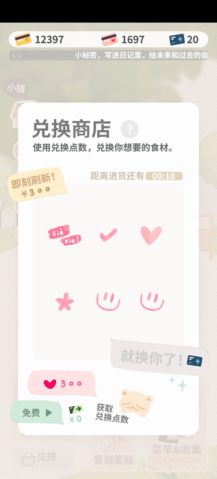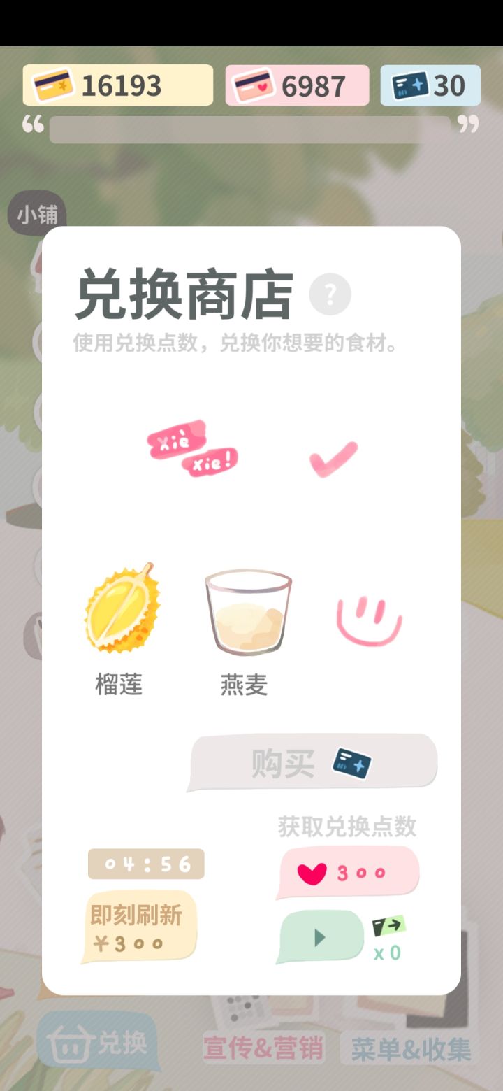 我觉得这个兑换商店的刷新有点问题,我特地观察对比过了,后台不计时长,看广告的时候也不计时长,只有在这个游戏的其他界面才计时长,这点让我特别意外,我还以为是卡了退出重进,结果是真的不计。这游戏说白了就是有点挂机,傻等5分钟实在太降低积极性了吧?希望可以修改一下这个机制